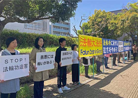 四月二十五日,日本熊本地区及长崎的法轮功学员分别在日本福冈中领馆及长崎中领馆前举行纪念“四·二五”和平上访二十七周年活动。