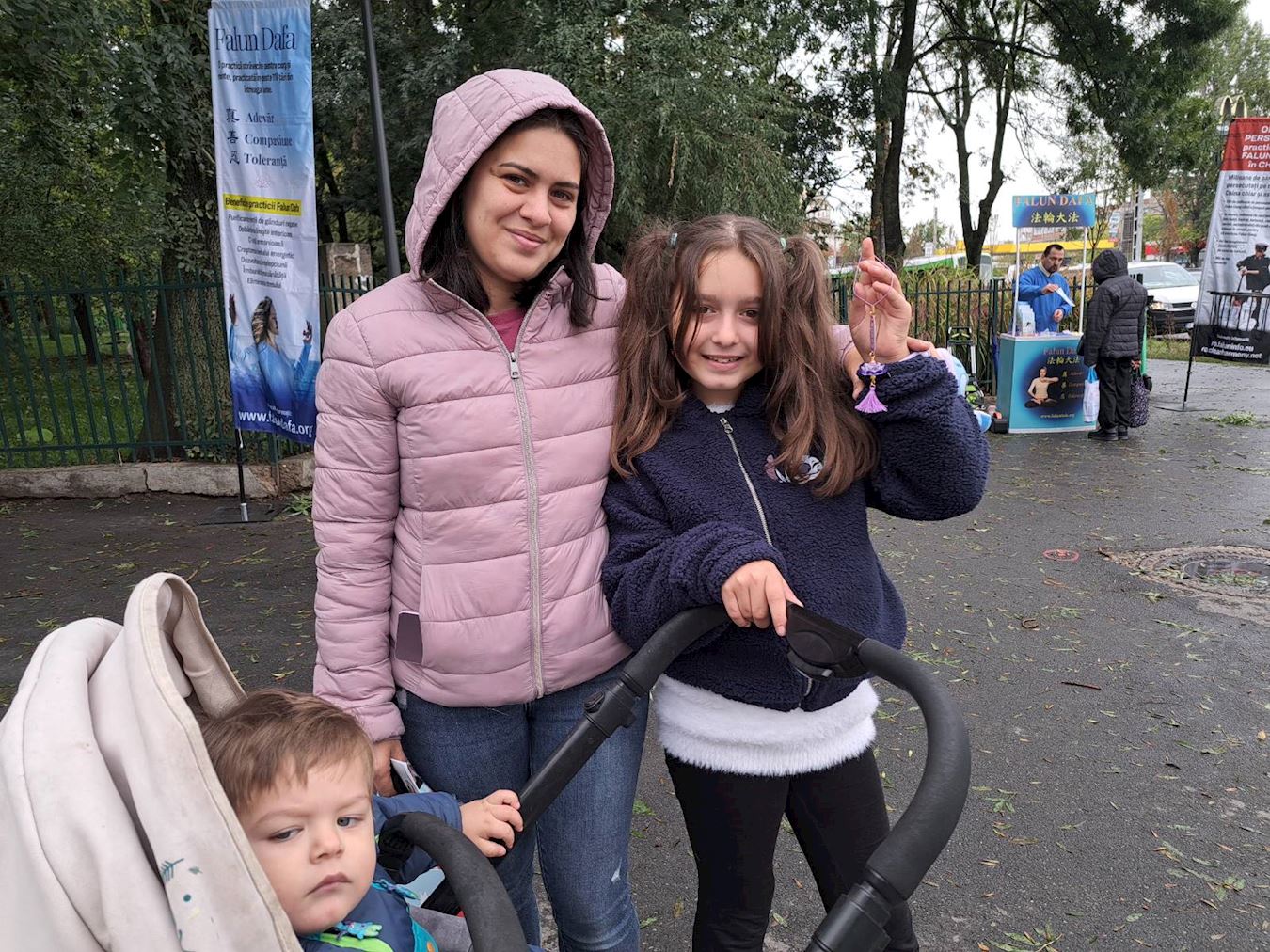 三十五岁的克拉里西娅(Clarisia)说,我们在做任何事时都需要这些原则。“我们需要善良。现在的人太缺乏耐心了,尤其是对孩子。”当时,克拉里西娅正带着两个孩子散步。她的小女儿索菲亚(Sofia)收到一朵莲花时非常开心,当一位法轮功学员向她讲解真、善、忍的原则时,她也能听懂并接受。