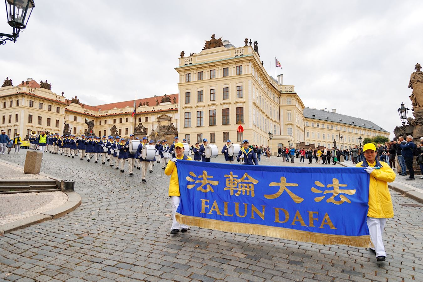 报道中说:“十月十一日,星期六,法轮功学员在布拉格举行了游行,提醒布拉格市民与游客关注(中共对该信仰团体的持续)迫害。世界上其它令人担忧的事件使得法轮功受迫害这个话题被淡化了,但是中共当局发动的这场迫害已持续了二十六年,杀害了成千上万中国人。”