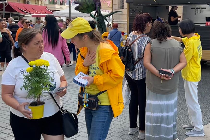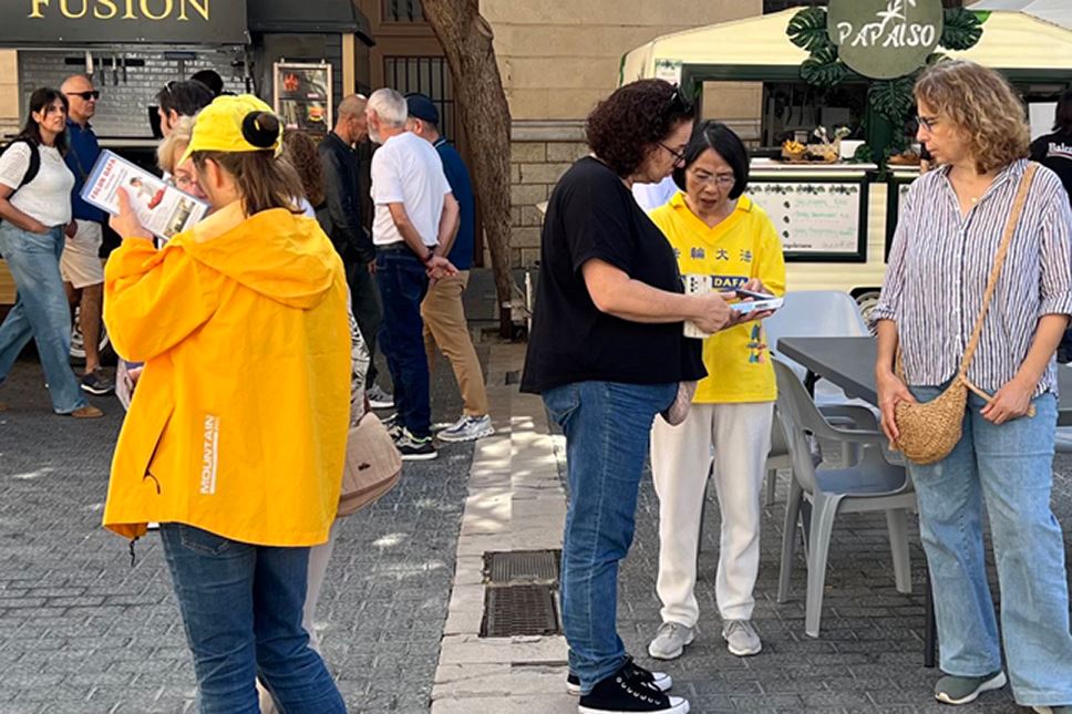 筃玛(Inma)来自格拉纳达,目前在印卡居住,她仔细聆听了学员介绍了法轮功的功法与书籍,这是她第一次了解法轮功,她很感兴趣。虽然当天没有时间学功,但她购买了一本《转法轮》,决定回到家里继续探索这个东方修炼功法。
