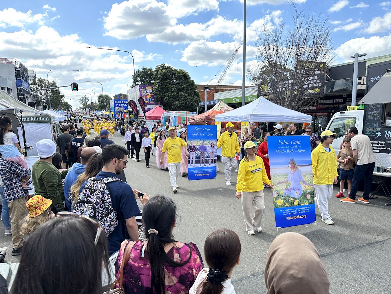 十月十八日,法轮功团体再次应邀参加了悉尼北部伊斯特伍德(Eastwood)庆祝其40周年活动——青苹果节(Granny Smith Festival)。活动吸引了超过九万名观众,有盛大的街头游行、游乐设施、市集摊位、美食餐车、现场表演、儿童活动以及最后压轴的烟火表演。