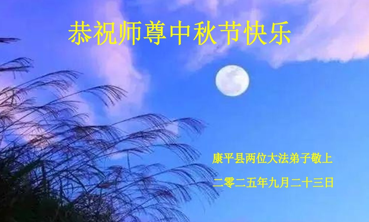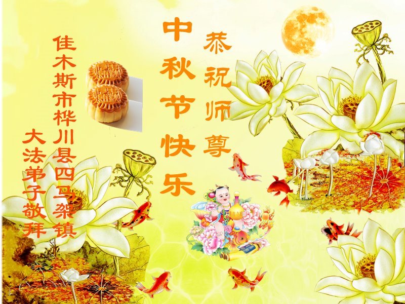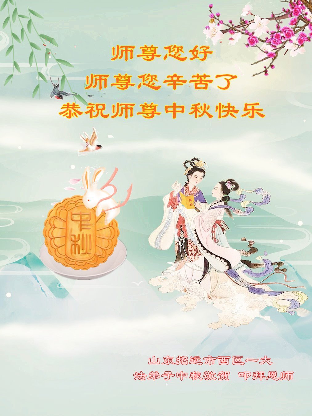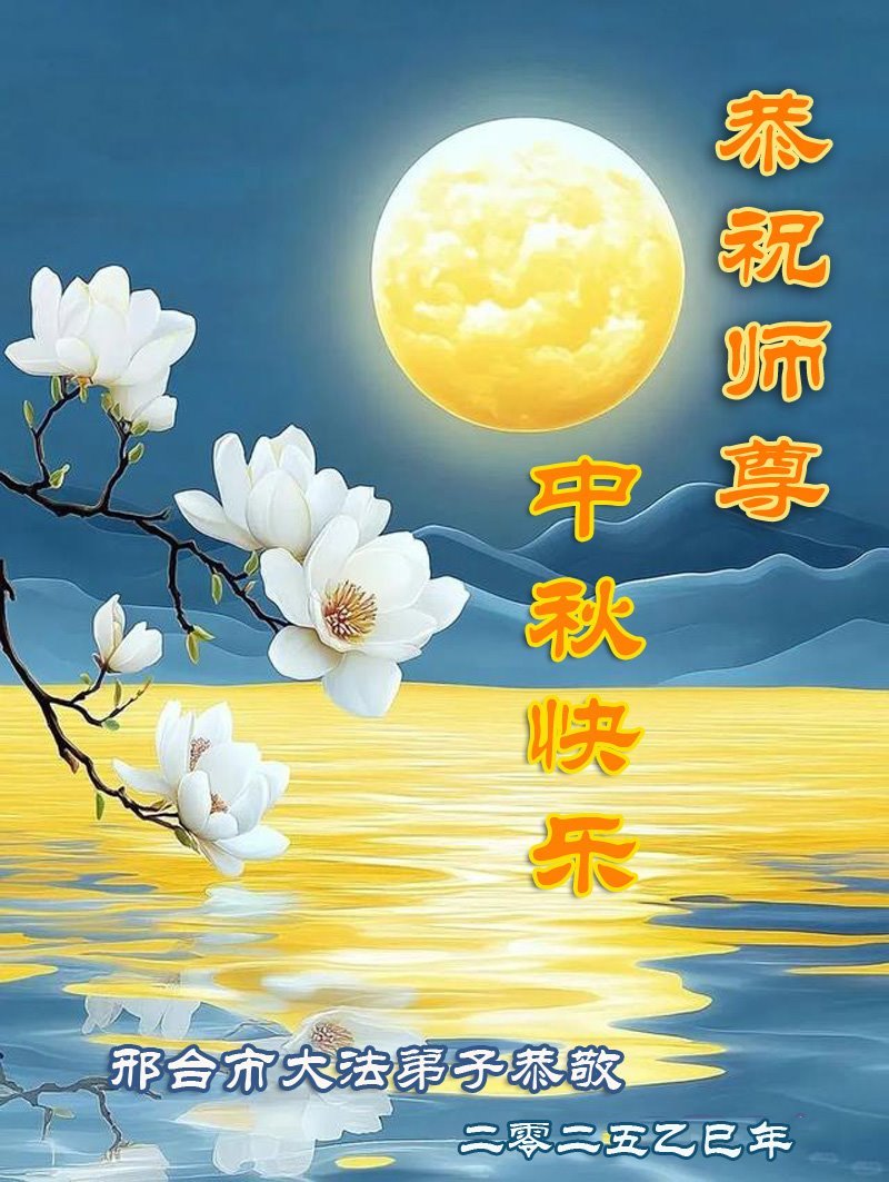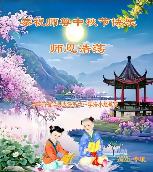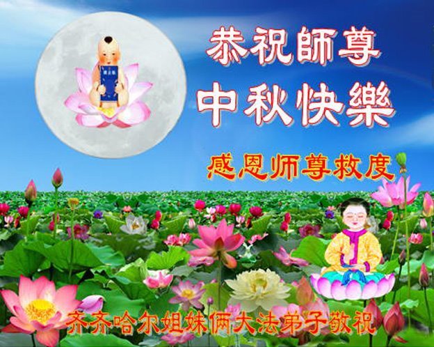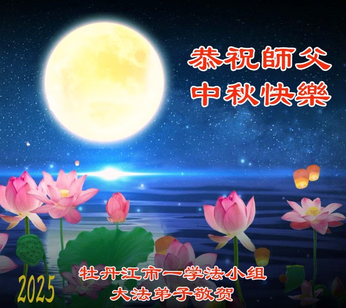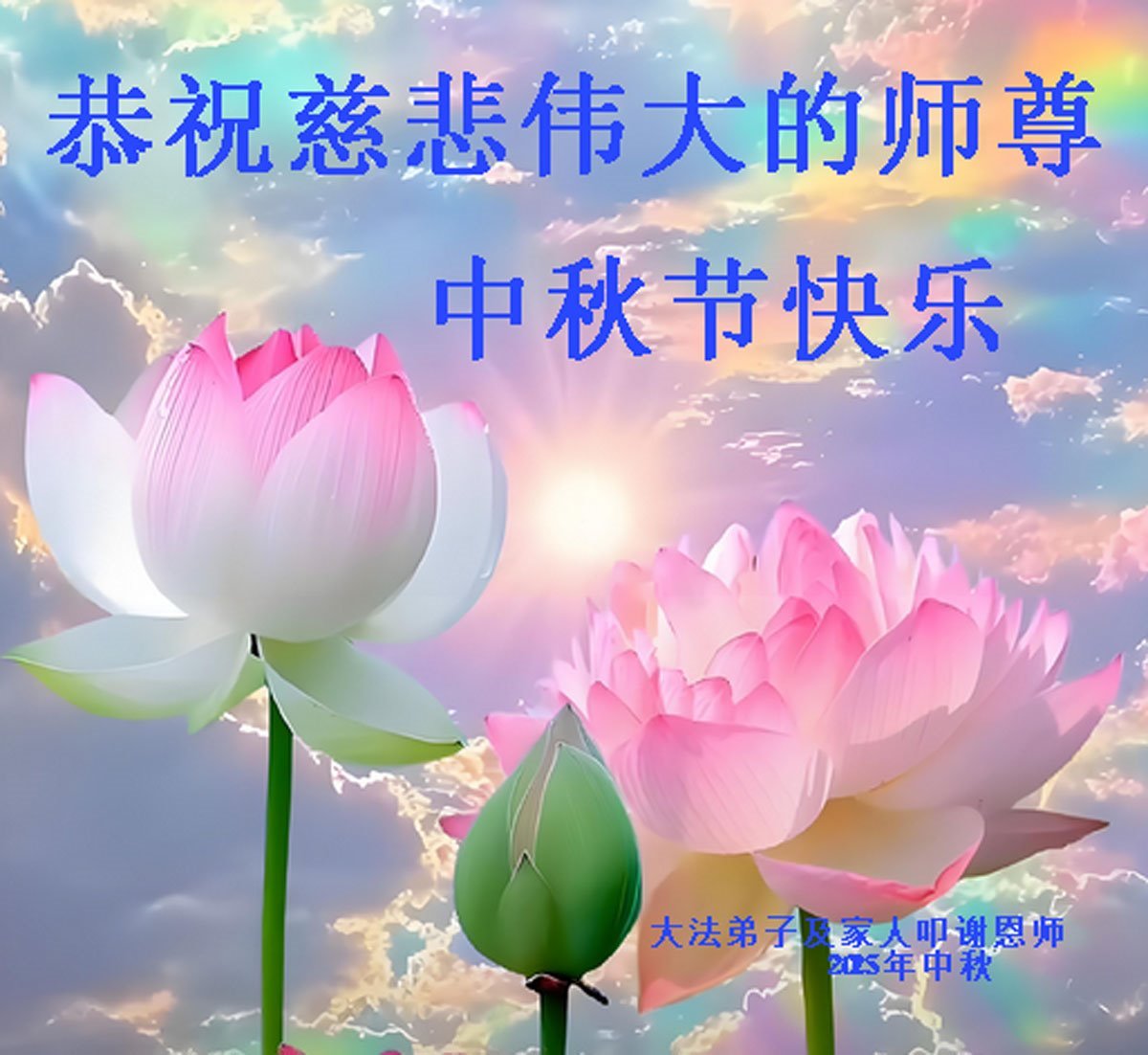 师尊您辛苦了!阖家团圆的中秋佳节又来临了。我们想念师尊,盼望早日见到师尊。在二十多年的修炼路上,是慈悲伟大的师尊牵着我们的手,一步步的走到了今天,师尊为我们的巨大付出和承受,我们是根本无法想象的,师尊的洪恩是用人类的语言无法表达的。弟子只有一颗坚定的心,谨遵师尊教诲,在所剩不多的时间里做好三件事,走好修炼的路,完成大法弟子的使命。深深叩拜师尊的救度之恩!