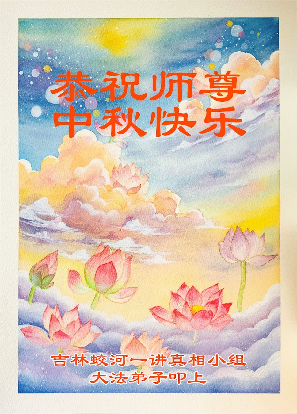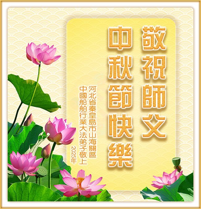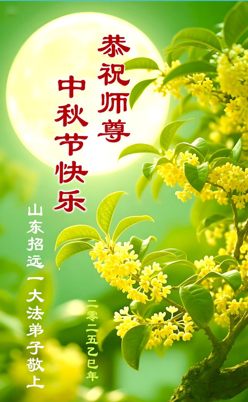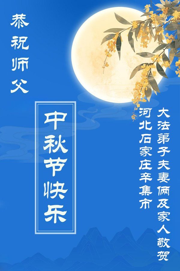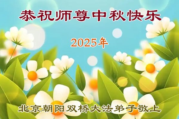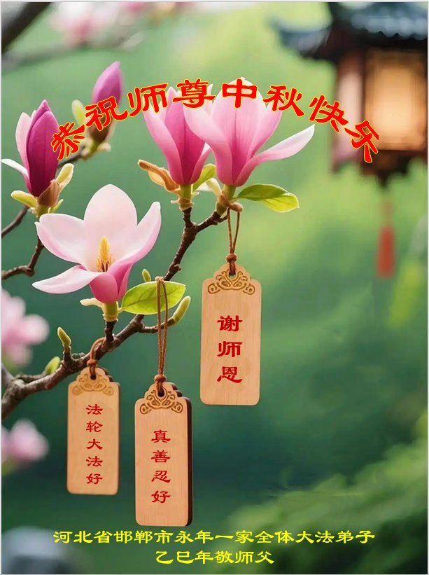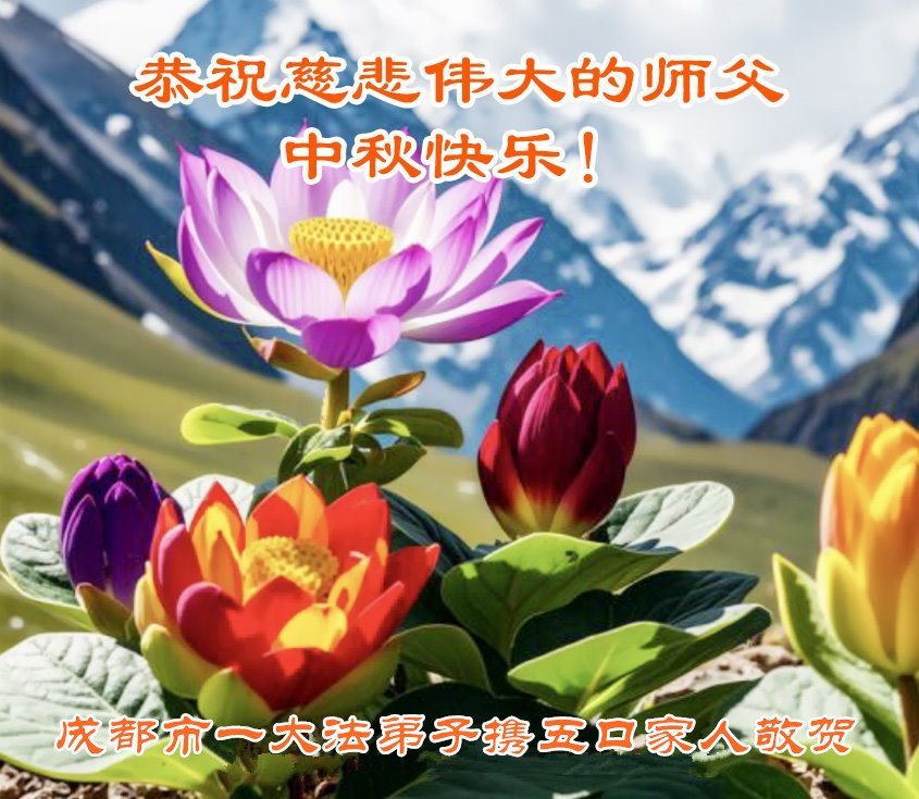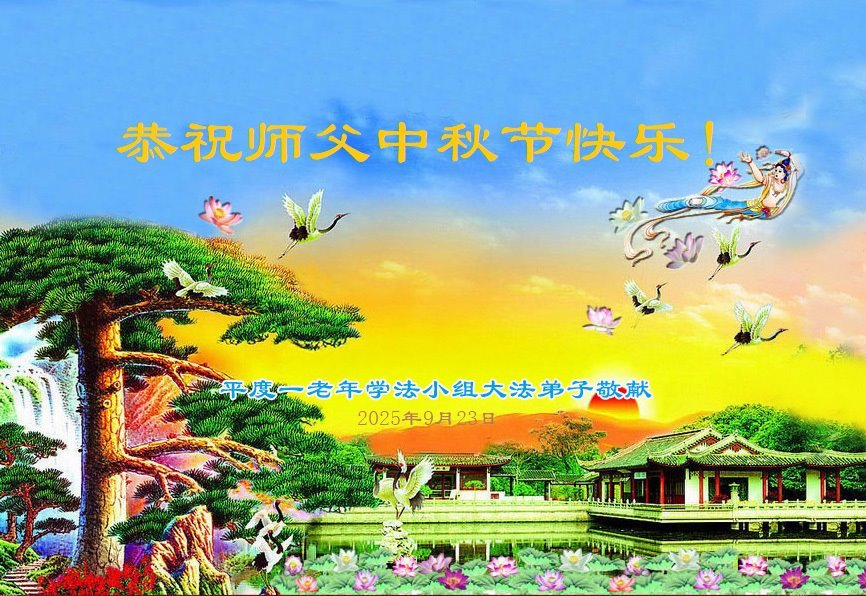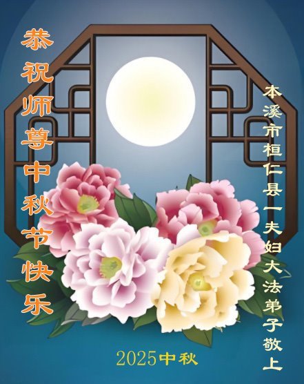 师尊您辛苦了!阖家团圆的中秋佳节又来临了。我们想念师尊,盼望早日见到师尊。在二十多年的修炼路上,是慈悲伟大的师尊牵着我们的手,一步步的走到了今天,师尊为我们的巨大付出和承受,我们是根本无法想象的,师尊的洪恩是用人类的语言无法表达的。弟子只有一颗坚定的心,谨遵师尊教诲,在所剩不多的时间里做好三件事,走好修炼的路,完成大法弟子的使命。深深叩拜师尊的救度之恩!
