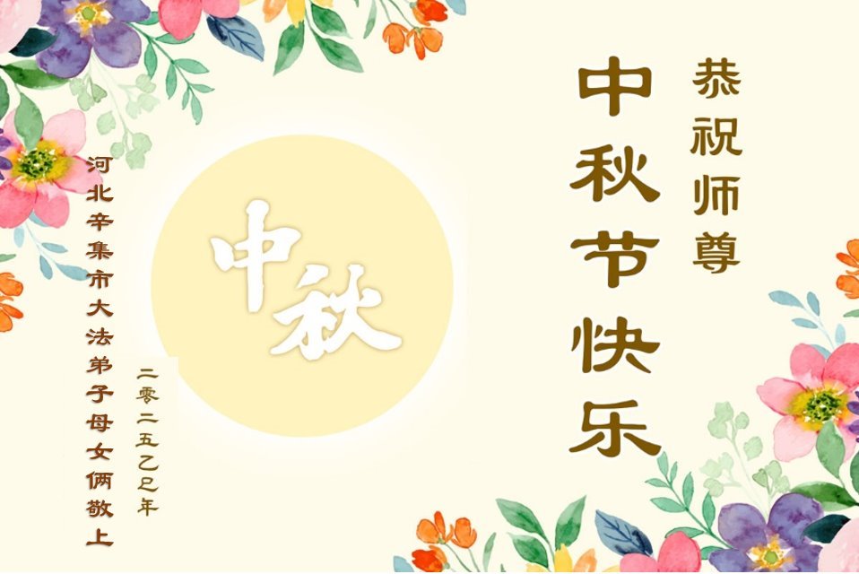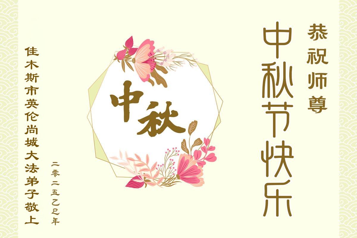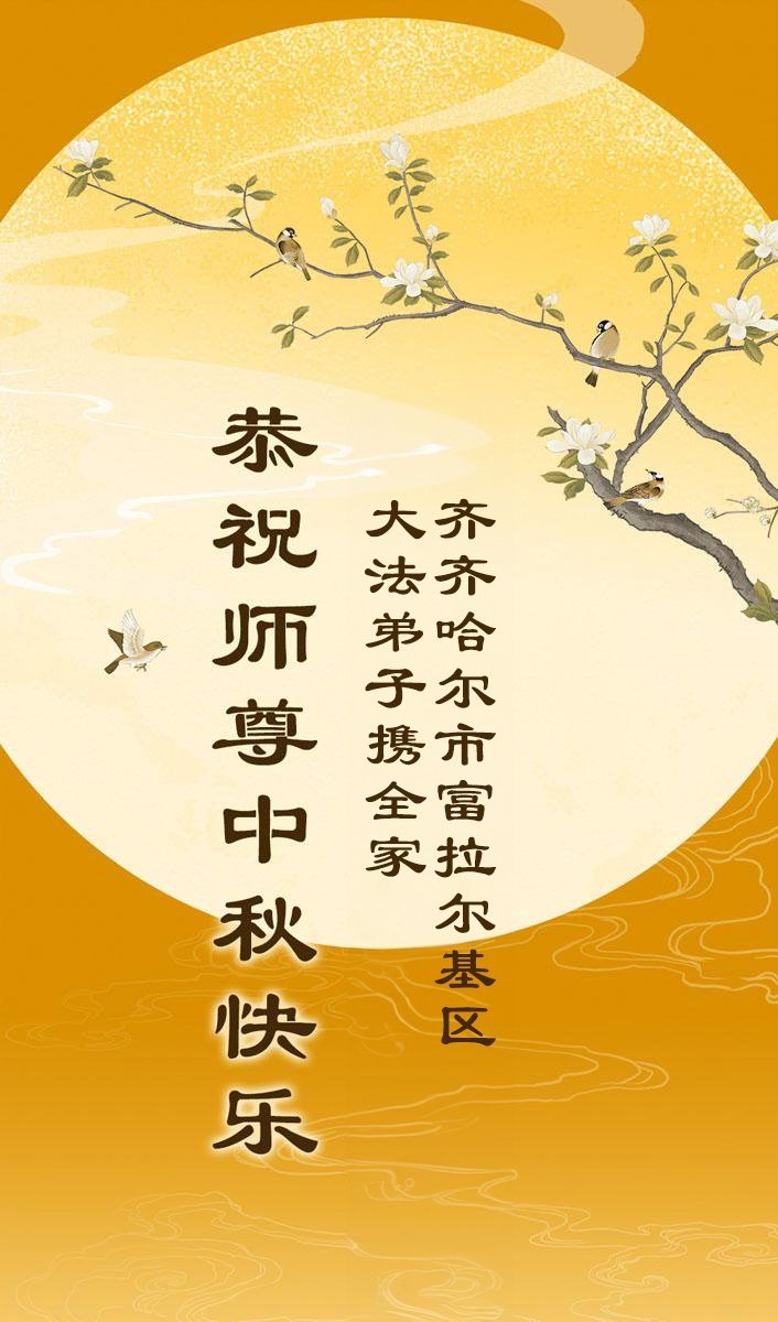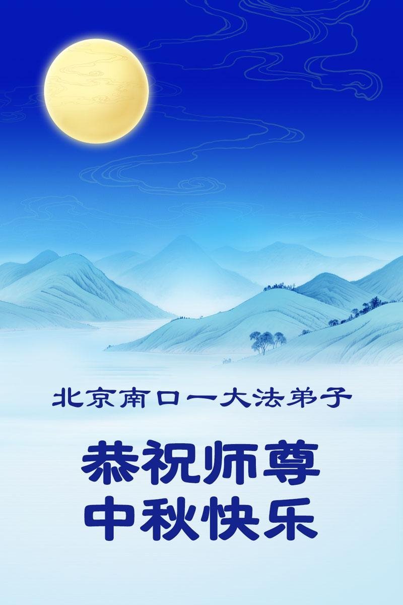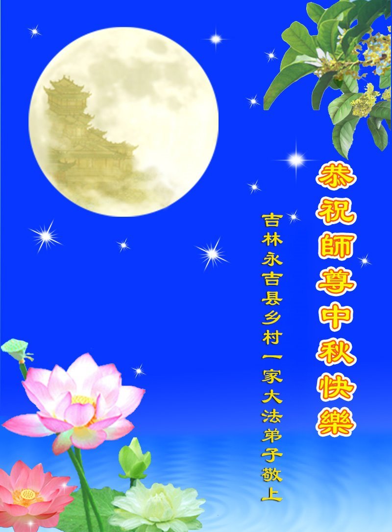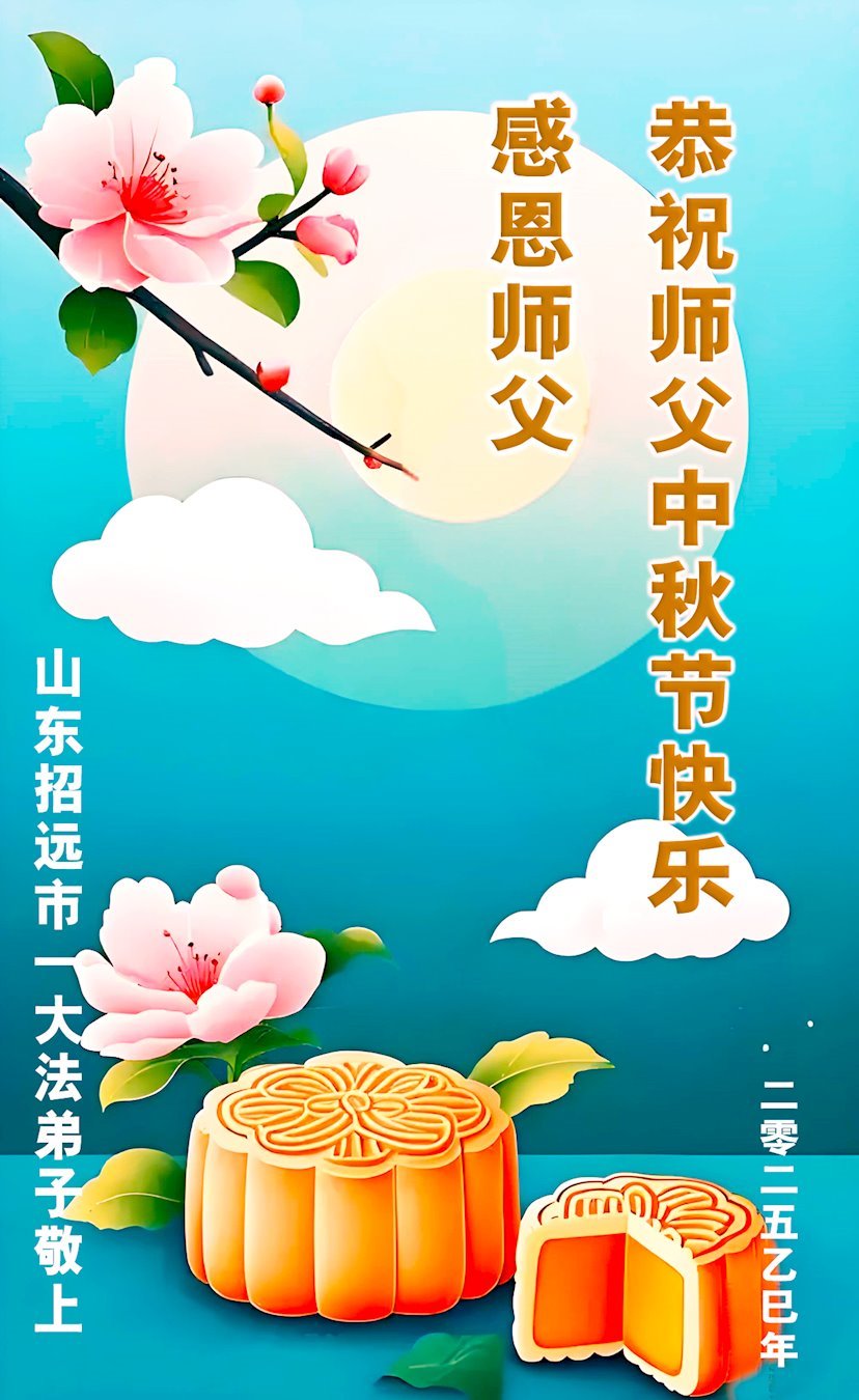 师尊您辛苦了!阖家团圆的中秋佳节又来临了。我们想念师尊,盼望早日见到师尊。在二十多年的修炼路上,是慈悲伟大的师尊牵着我们的手,一步步的走到了今天,师尊为我们的巨大付出和承受,我们是根本无法想象的,师尊的洪恩是用人类的语言无法表达的。弟子只有一颗坚定的心,谨遵师尊教诲,在所剩不多的时间里做好三件事,走好修炼的路,完成大法弟子的使命。深深叩拜师尊的救度之恩!