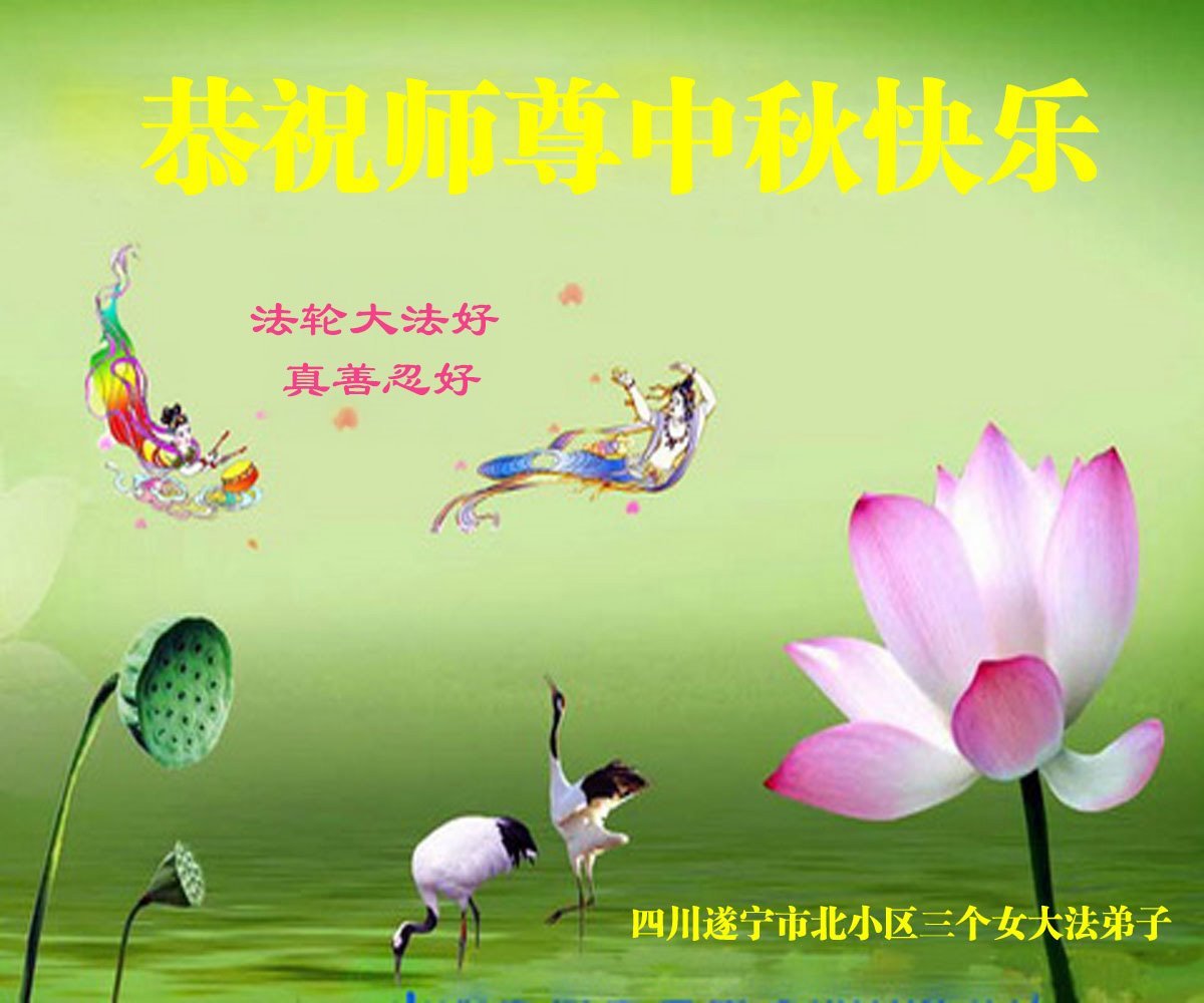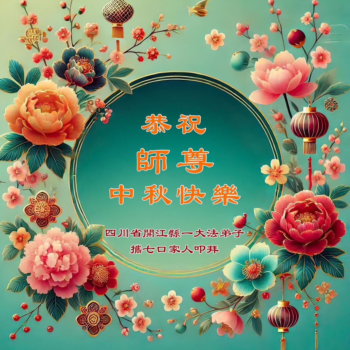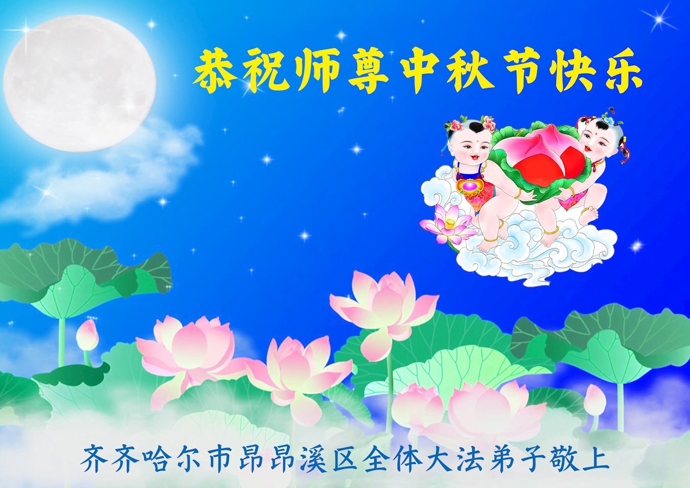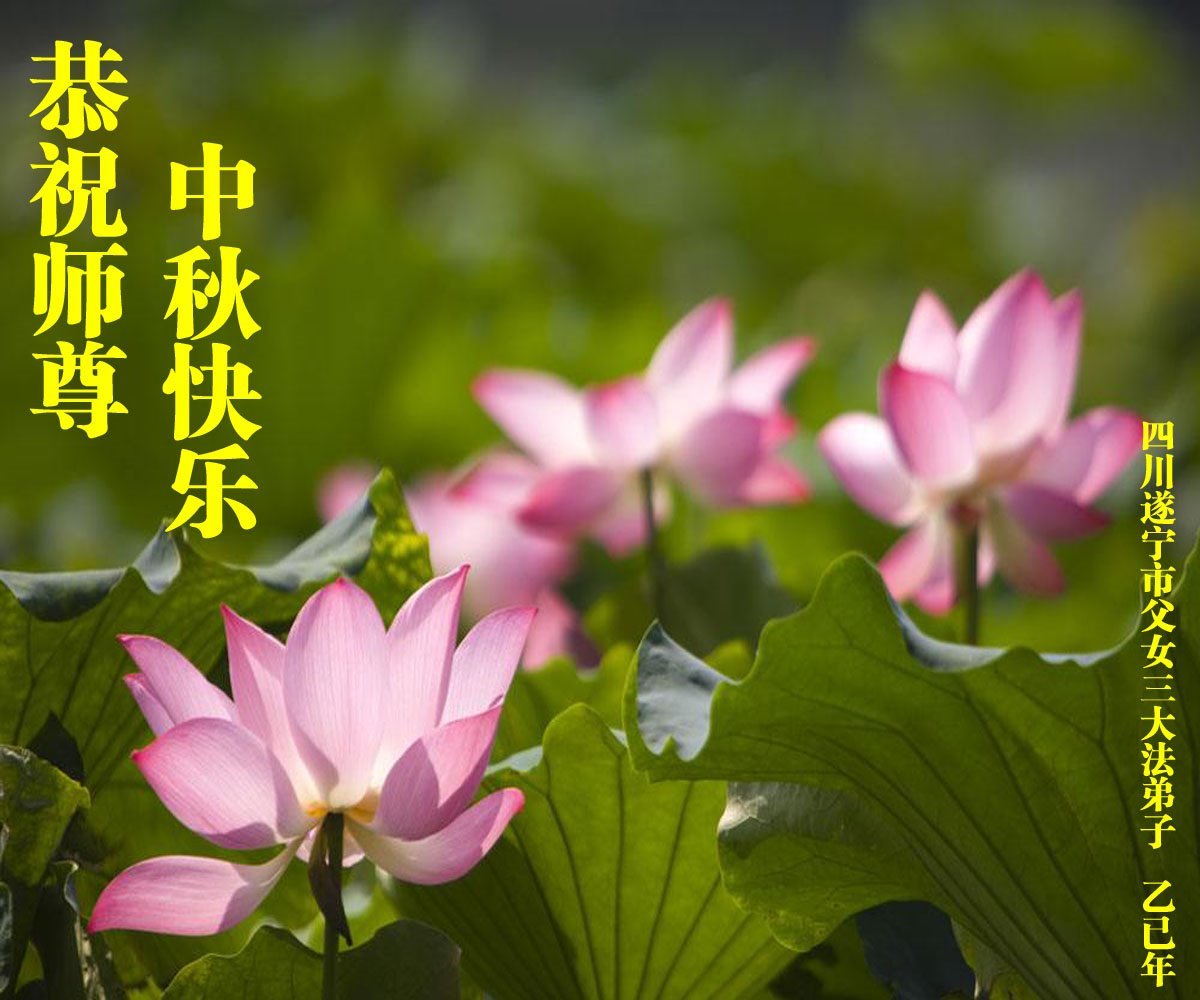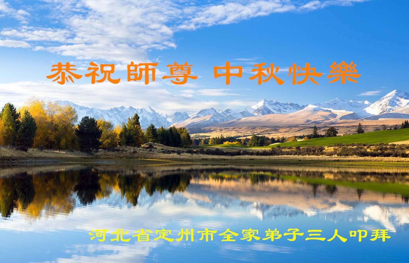 师尊您辛苦了!阖家团圆的中秋佳节又来临了。我们想念师尊,盼望早日见到师尊。在二十多年的修炼路上,是慈悲伟大的师尊牵着我们的手,一步步的走到了今天,师尊为我们的巨大付出和承受,我们是根本无法想象的,师尊的洪恩是用人类的语言无法表达的。弟子只有一颗坚定的心,谨遵师尊教诲,在所剩不多的时间里做好三件事,走好修炼的路,完成大法弟子的使命。深深叩拜师尊的救度之恩!