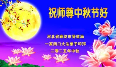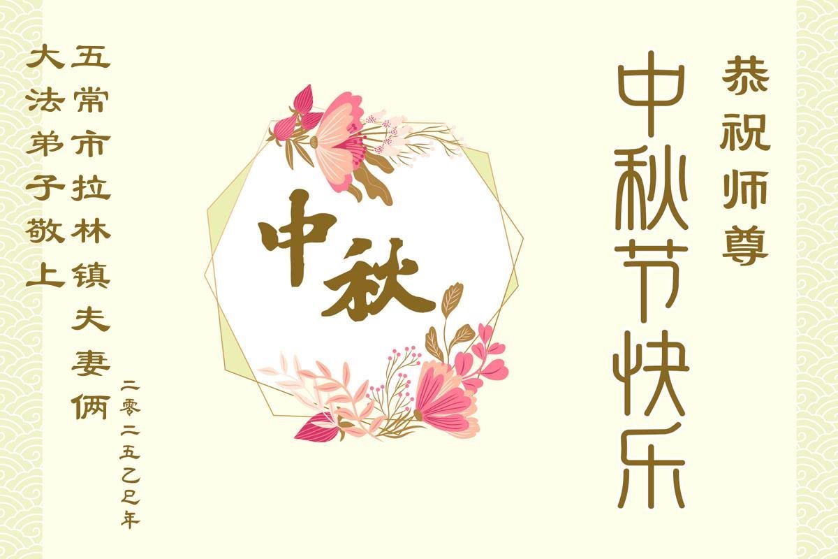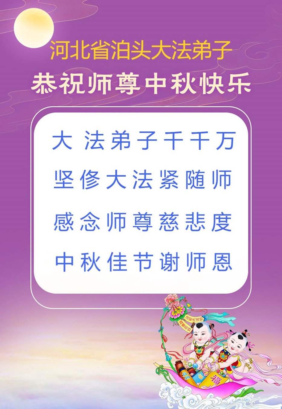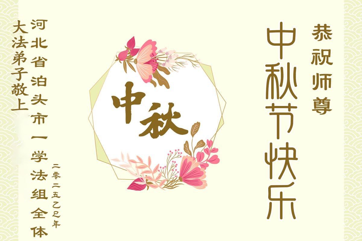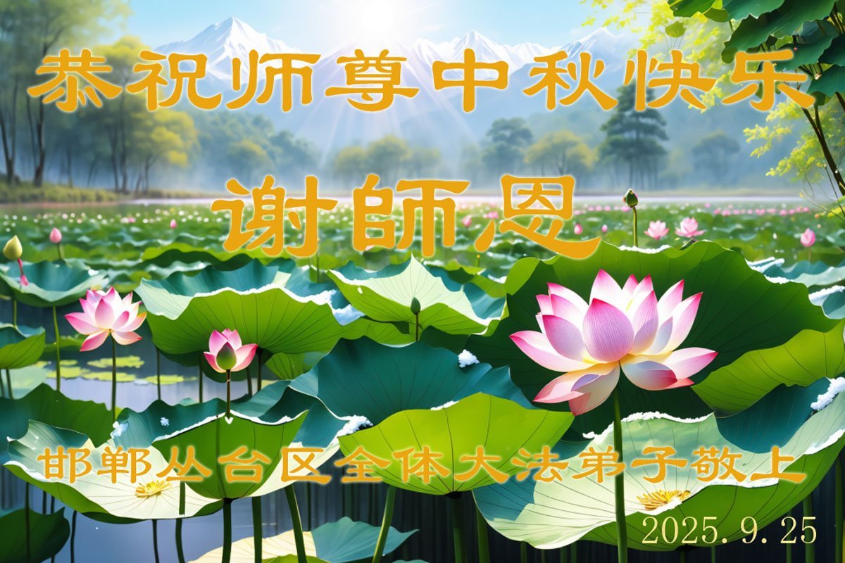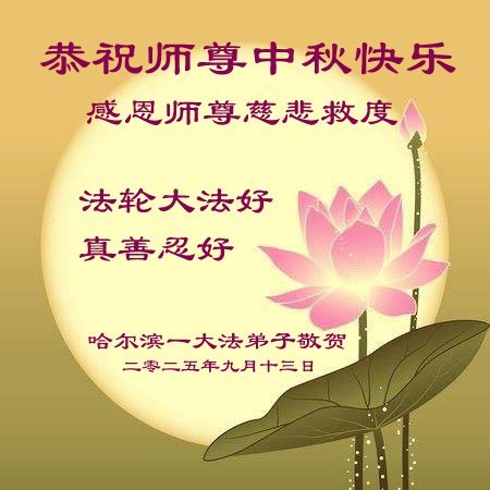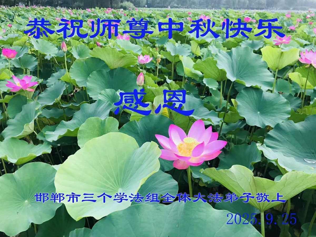 师尊您辛苦了!阖家团圆的中秋佳节又来临了。我们想念师尊,盼望早日见到师尊。在二十多年的修炼路上,是慈悲伟大的师尊牵着我们的手,一步步的走到了今天,师尊为我们的巨大付出和承受,我们是根本无法想象的,师尊的洪恩是用人类的语言无法表达的。弟子只有一颗坚定的心,谨遵师尊教诲,在所剩不多的时间里做好三件事,走好修炼的路,完成大法弟子的使命。深深叩拜师尊的救度之恩!