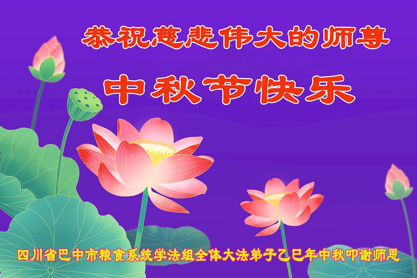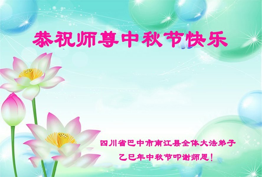 四川省巴中市财税系统大法弟子在贺词中表示:“茫茫宇宙,芸芸众生,师尊选择我们当正法时期的大法弟子,传给我们宇宙大法,将我们满身业债洗净,使我们生命得到升华回归,师尊佛恩浩荡,弟子无比感恩!”