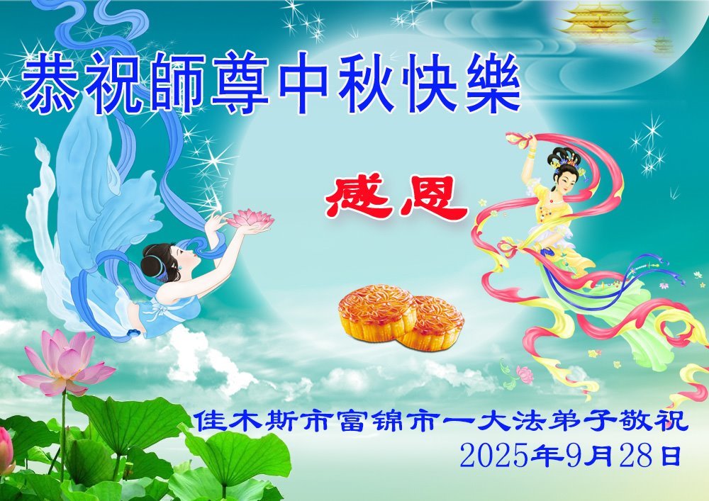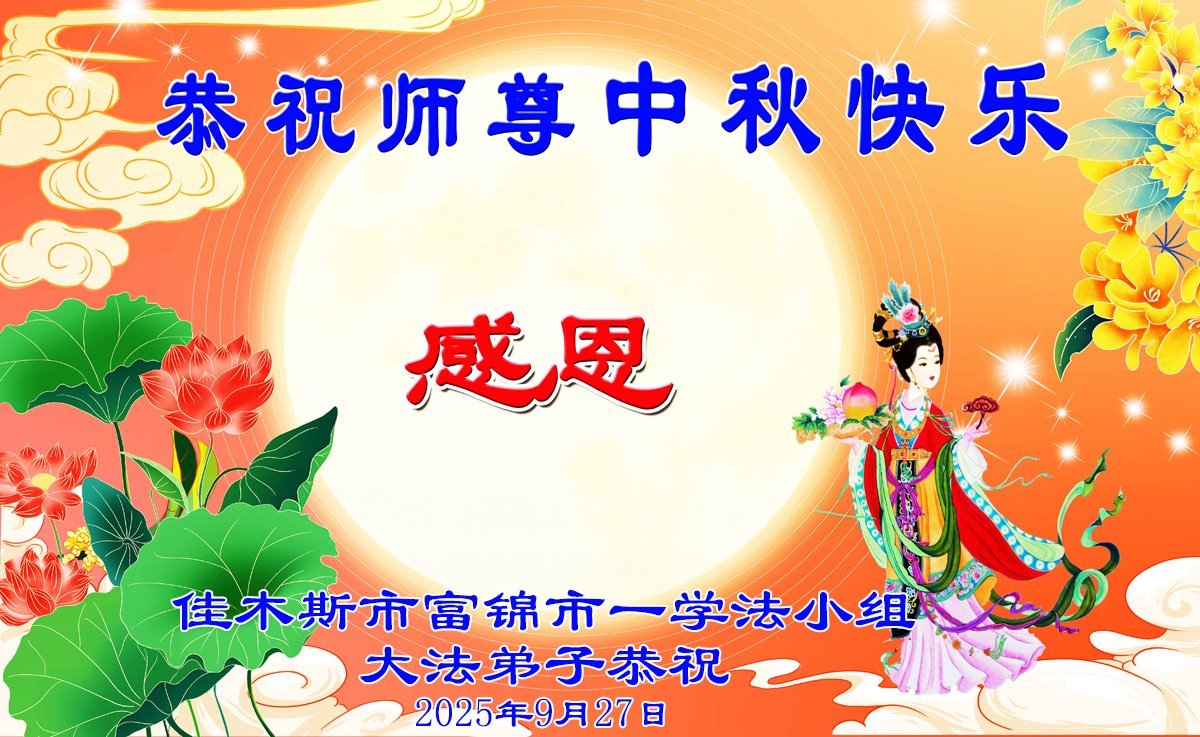 【明慧网二零二五年十月三日】繁星点点,中秋月圆,望月明志,遥拜恩师。中国大陆各行各业大法弟子们寄上一封封诚挚问候,表达对李洪志师尊的无限感恩。大法弟子们表示,一定学好法,修好自己,多救人,走好走正修炼的路,不辜负师尊赋予大法弟子的使命,紧随师尊法正人间。