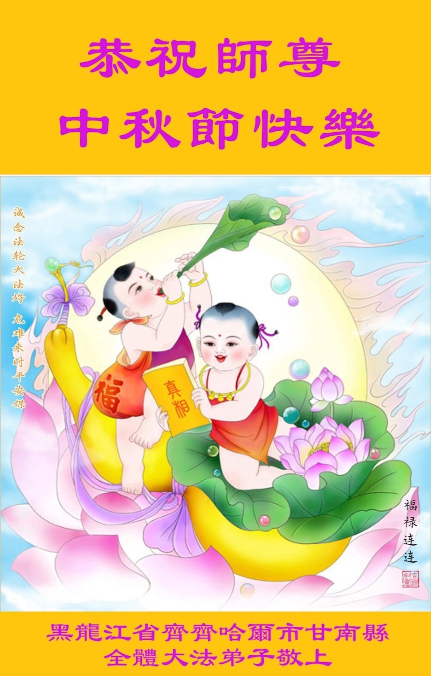![]() 图3:加拿大魁北克市法轮功学员恭祝李洪志大师中秋节快乐。 |