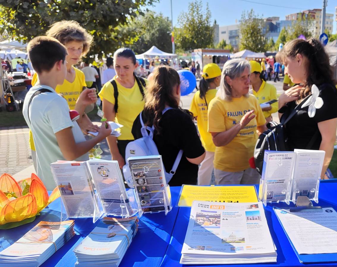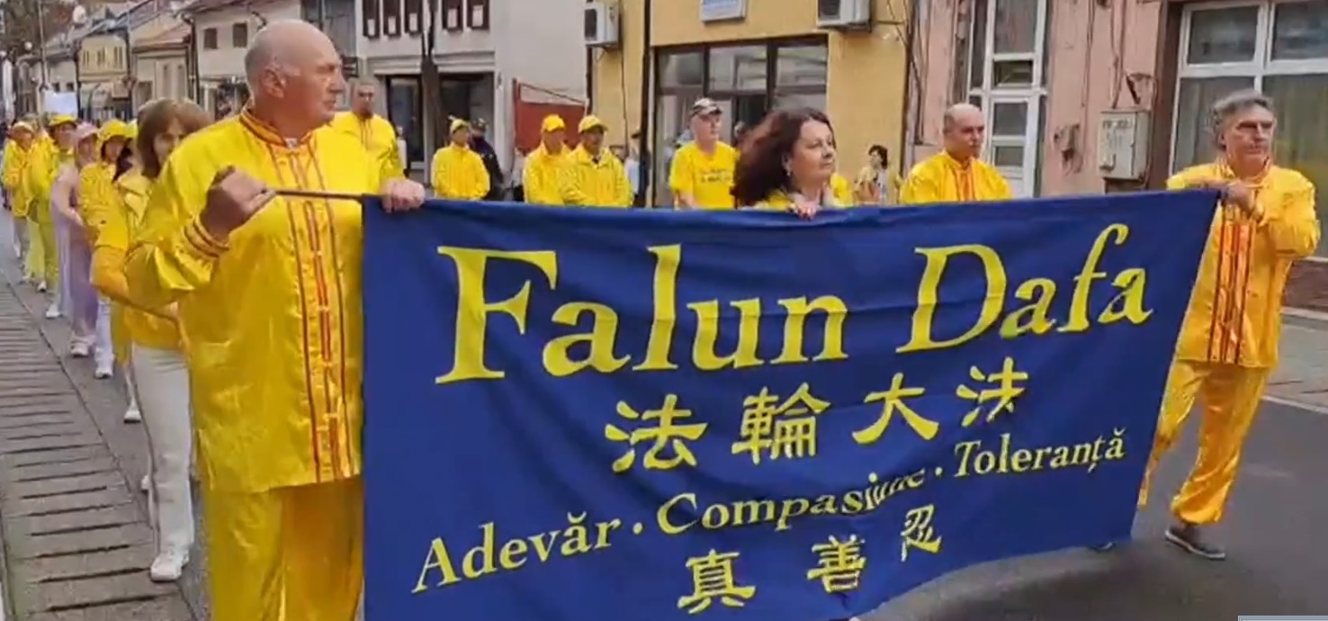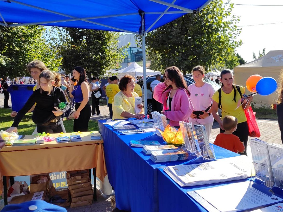 【明慧网二零二五年十月四日】二零二五年九月十九日,来自罗马尼亚、匈牙利、斯洛伐克、摩尔多瓦和法国五个国家的部分法轮功学员,参加了罗马尼亚巴亚马雷(Baia Mare)栗子节( Chestnut Festival)的开幕式和游行,并组织了三天的法轮功信息日活动。