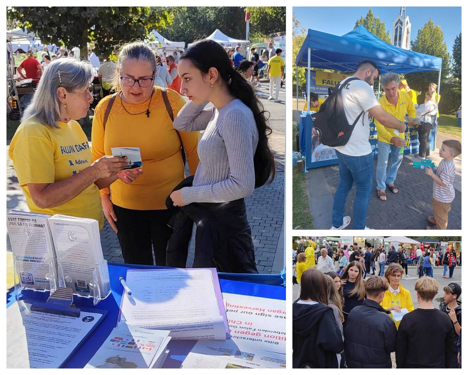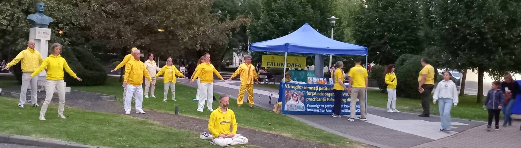 九月十九日(星期五)上午十一点至晚九点,学员们在马拉酒店附近的尤利乌·马纽雕像(the Statue of Iuliu Maniu)附近设立了信息展位,并于下午十二点三十分至三点参加了游行。九月二十日(星期六)上午十一点至晚九点,信息日活动继续进行。星期天上午九点至十一点,学员们在雷吉纳玛丽亚公园(Regina Maria Park)的法轮功炼功点演示功法,并于中午十二点至晚​​上九点在尤利乌·马纽雕像附近继续进行信息日活动。