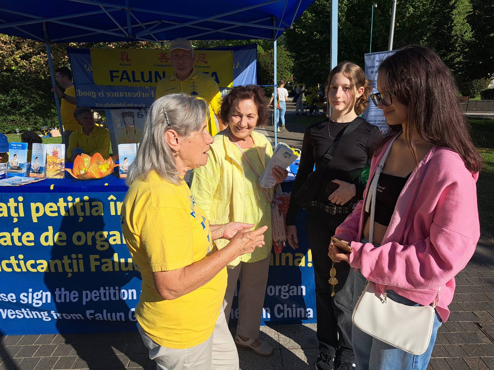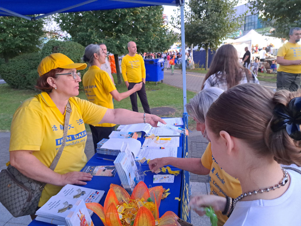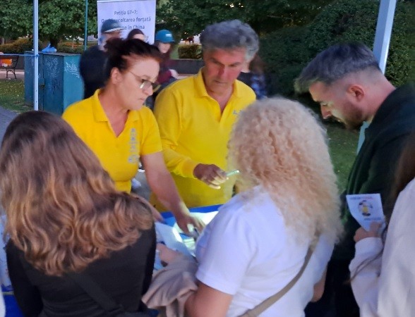 过往的路人与法轮功学员交谈,进一步了解法轮大法的原理。许多人都表示认同法轮大法(真、善、忍)原理,并在自己的生活中也遵循这些原理。许多罗马尼亚的老年人都亲身经历过罗马尼亚共产主义政权时期,他们也表达了对遭受中共迫害的法轮功学员的同情。
