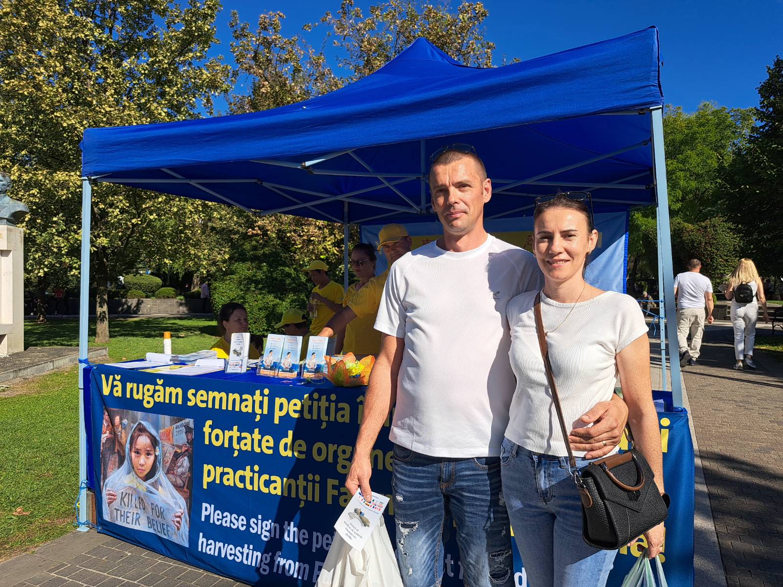 安卡(Anca)和保罗(Paul)阅读了关于中共迫害和罪行的资料。 “这是一种非常好的修炼方式,”保罗说。他的太太补充道:“这些原理很棒。我们需要真。真、善、忍就是我们需要的一切。”
