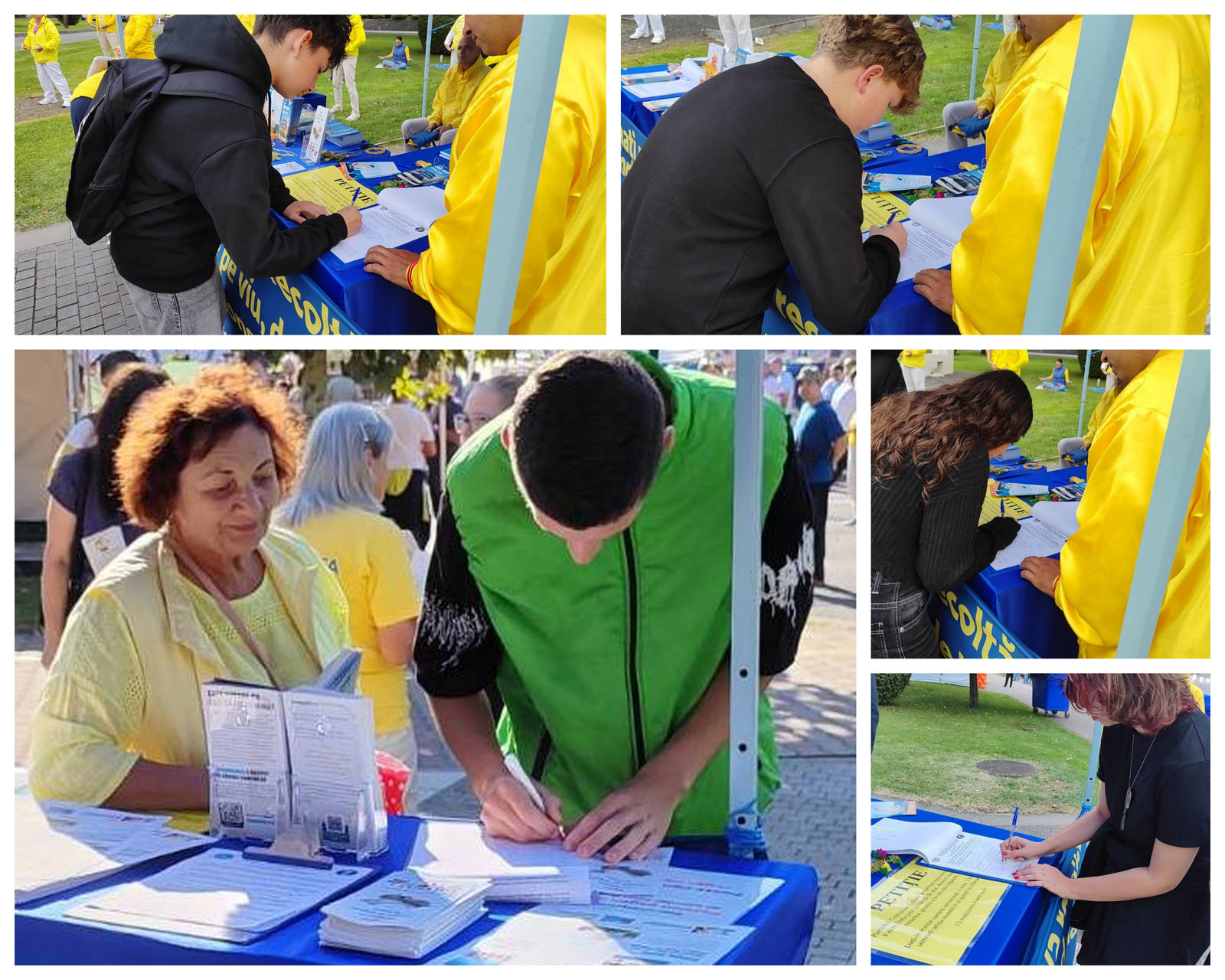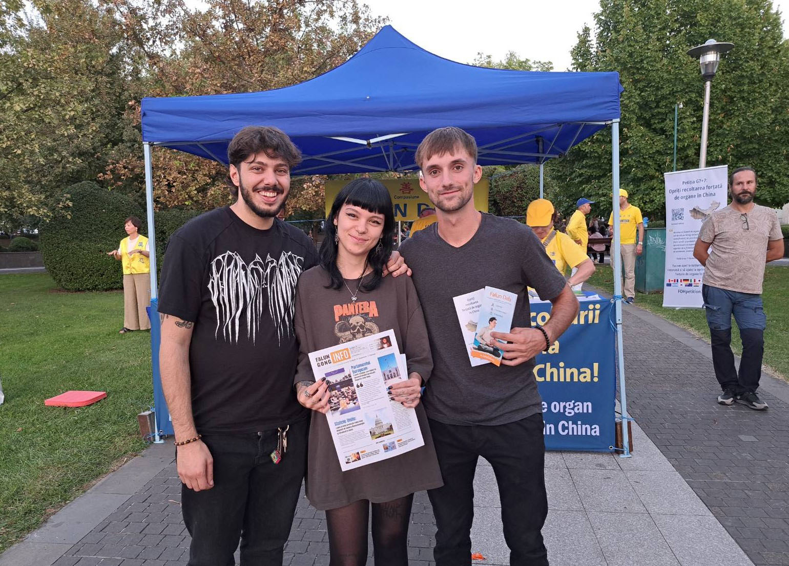 大卫(David)、奥索利亚(Orsolya )和博格丹(Bogdan) 在致 G7+7 国家的请愿书上签名,希望法轮功学员能够获释,并被允许践行他们的信仰。 “这些原则应该在世界各地传播,而不是遭受迫害。”他们说。签名后,大卫还带其他朋友一起签名。他感到愤怒,“在二十一世纪,竟然还有人针对如此平和、有精神信仰的人们犯下这种罪行。”
