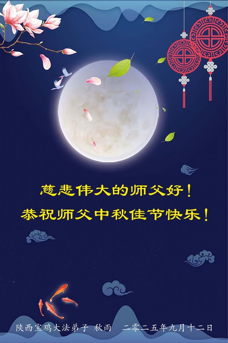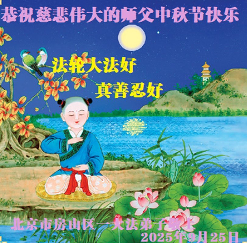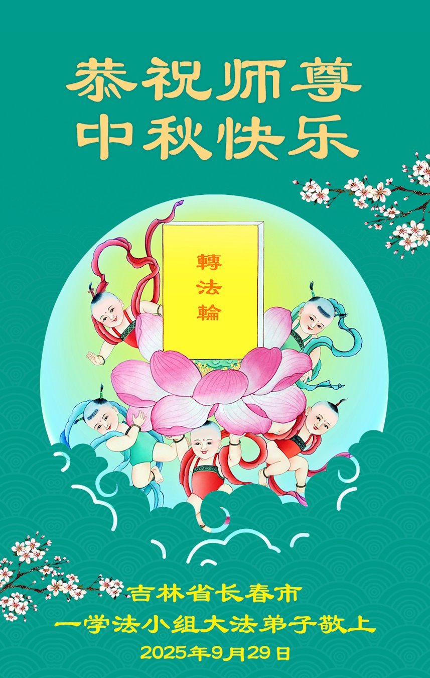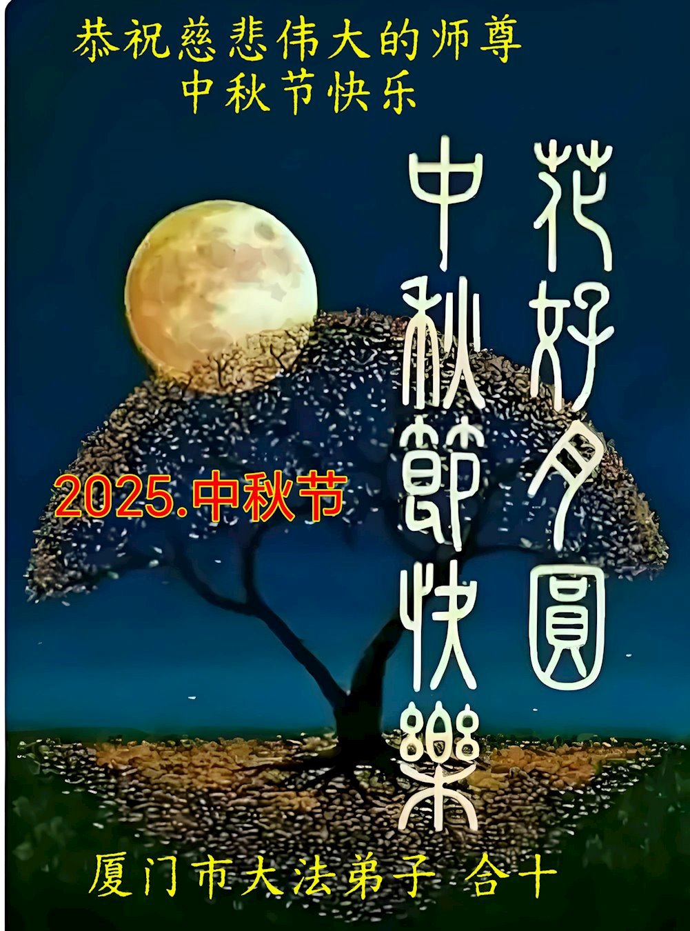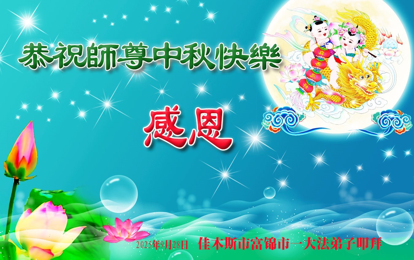 <英文版: https://en.minghui.org/html/articles/2025/10/5/230593.html>大洛杉矶法轮功学员恭祝师尊中秋快乐