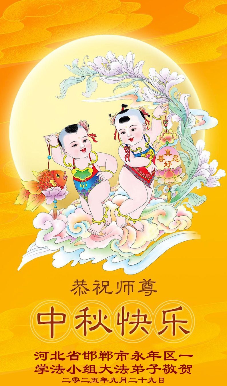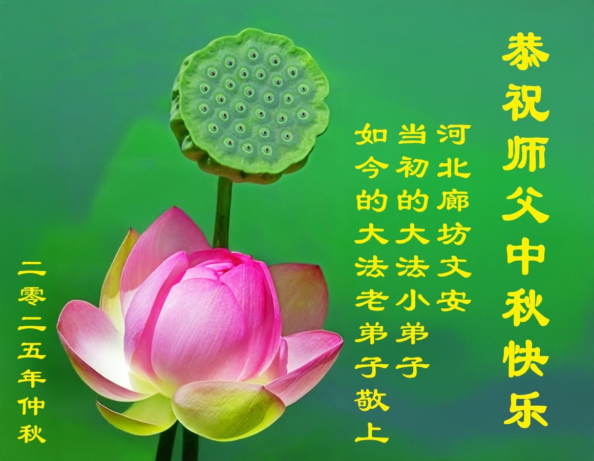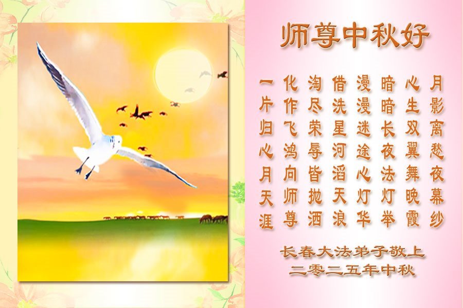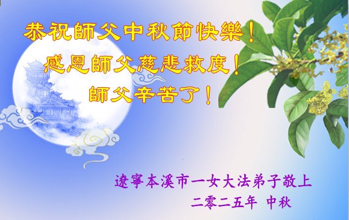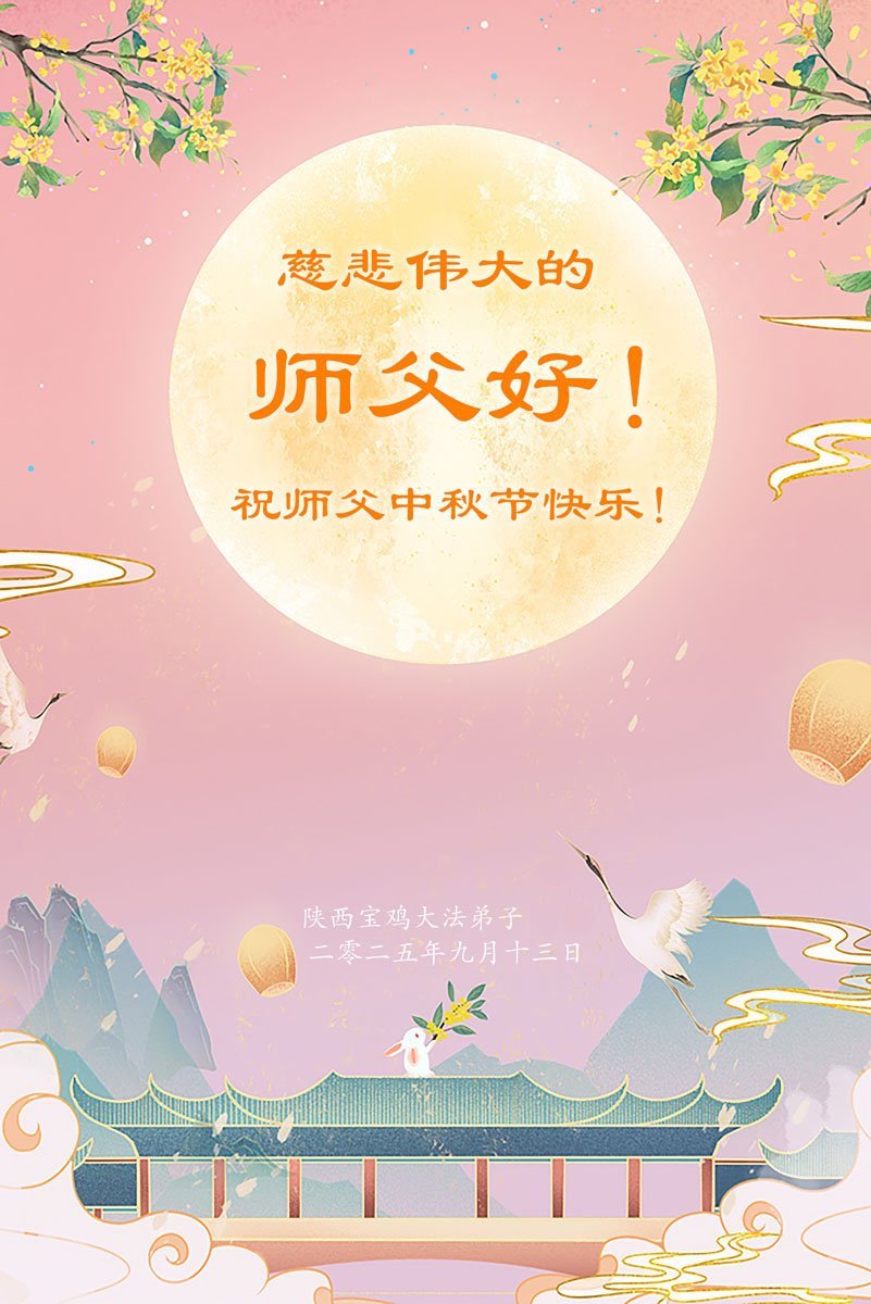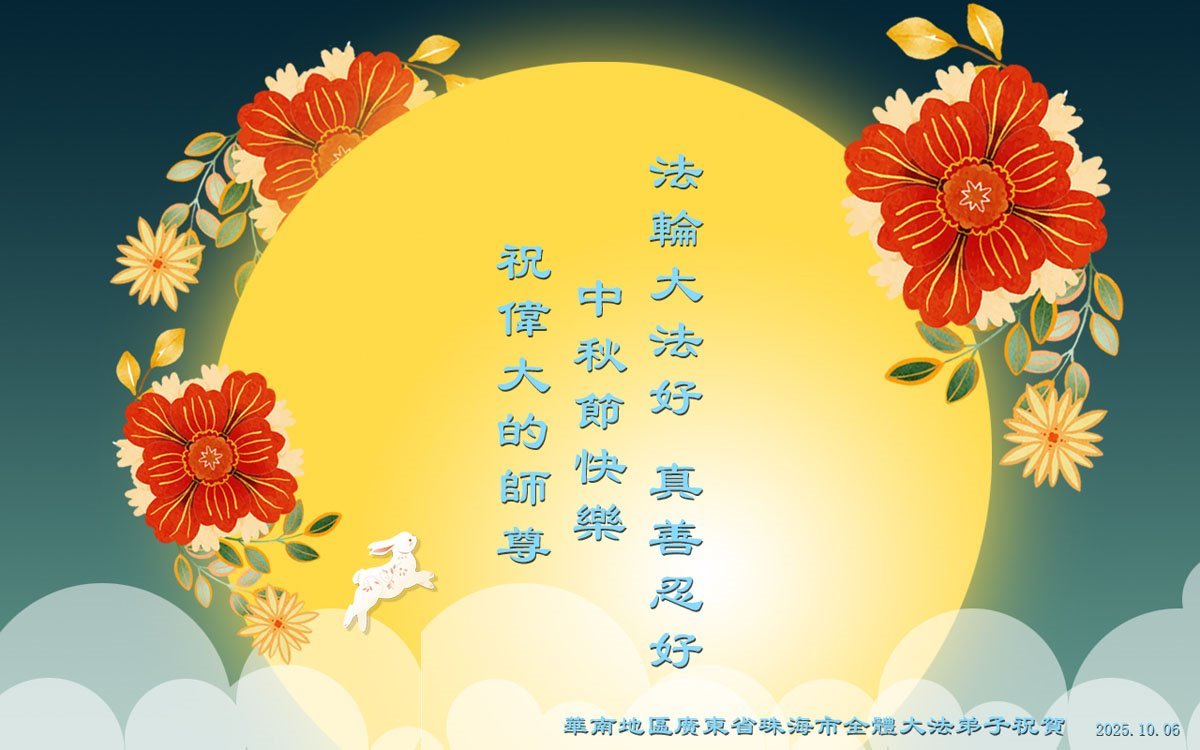 <英文版: https://en.minghui.org/html/articles/2025/10/5/230593.html>大洛杉矶法轮功学员恭祝师尊中秋快乐
