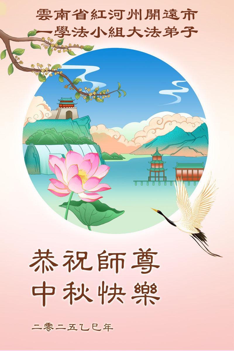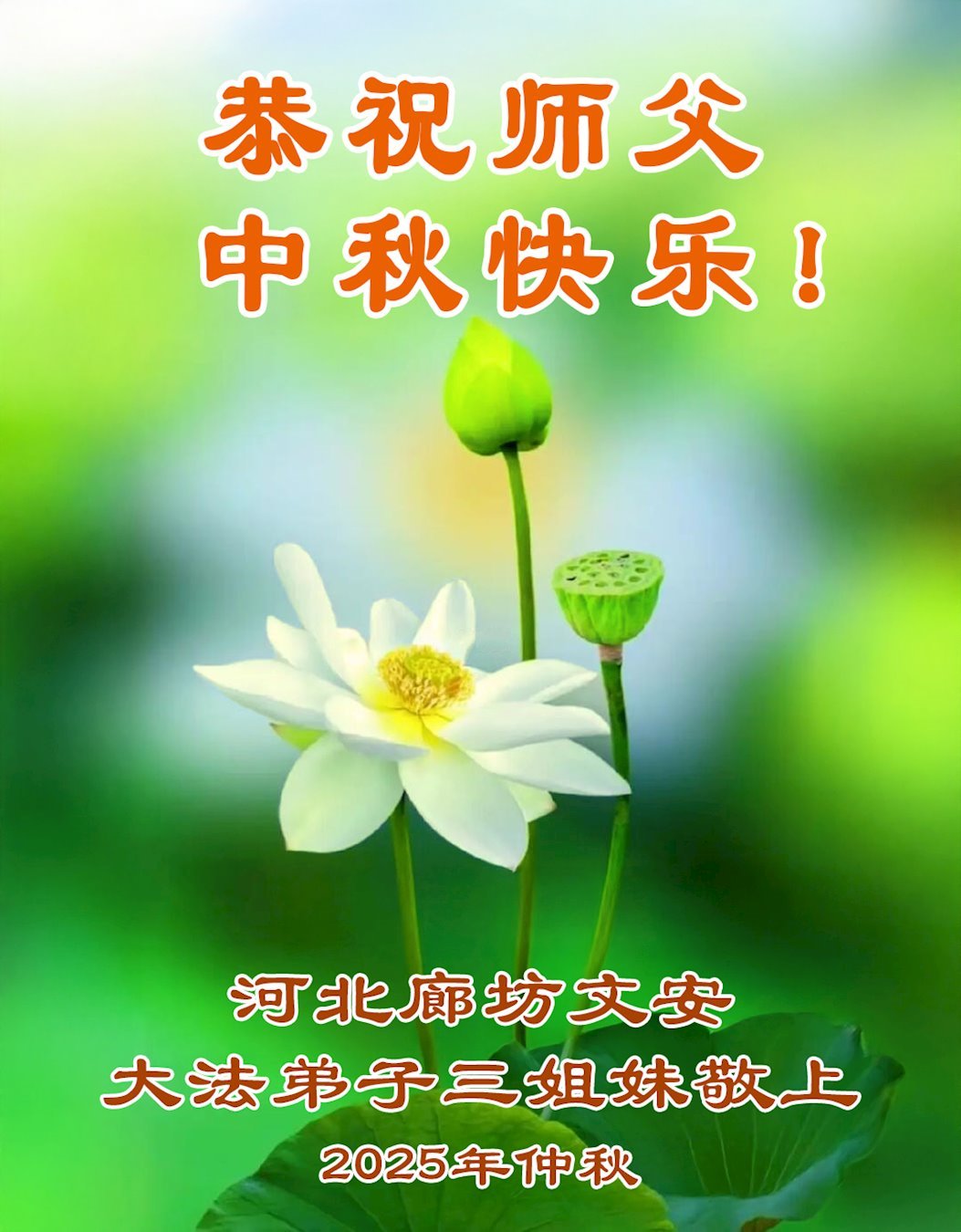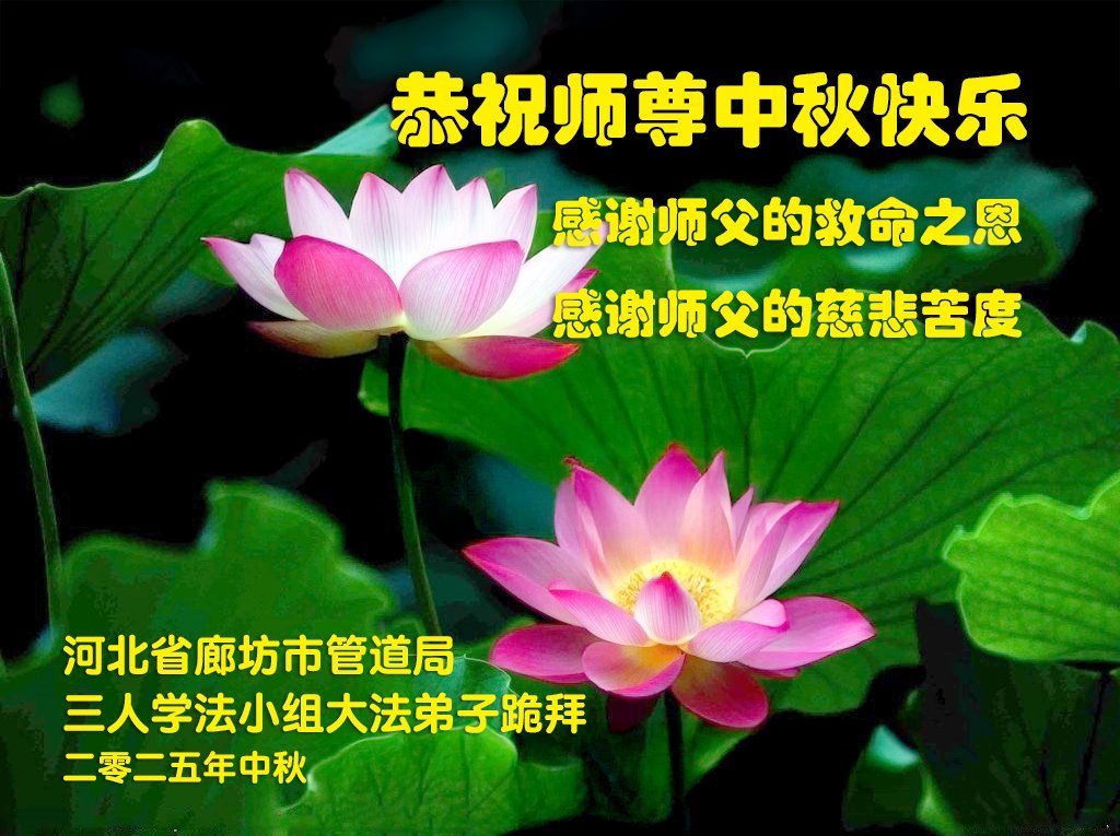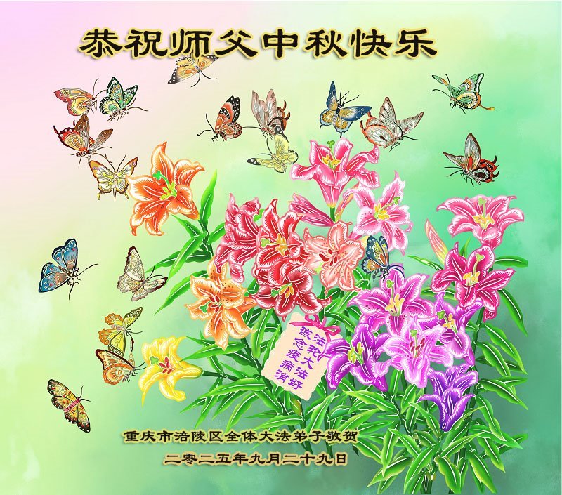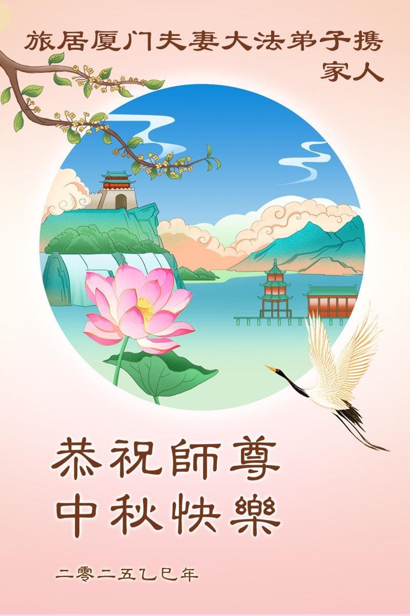 <英文版: https://en.minghui.org/html/articles/2025/10/5/230593.html>大洛杉矶法轮功学员恭祝师尊中秋快乐