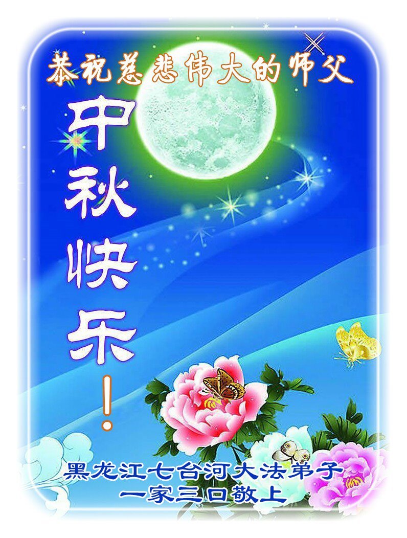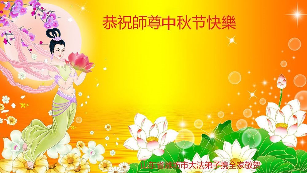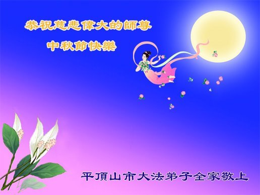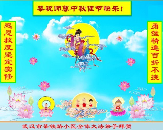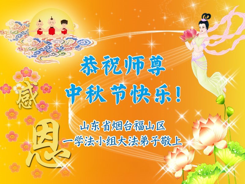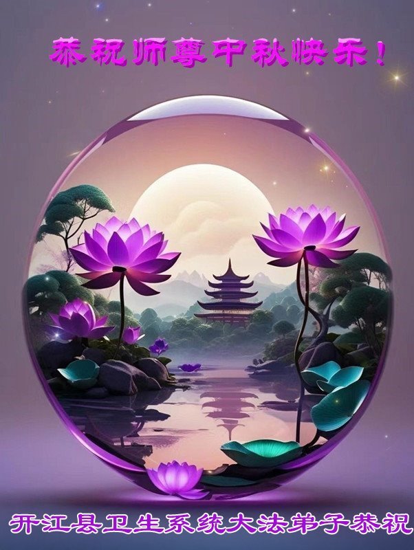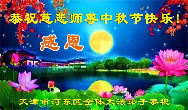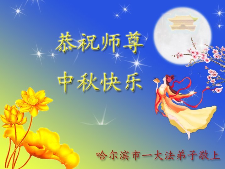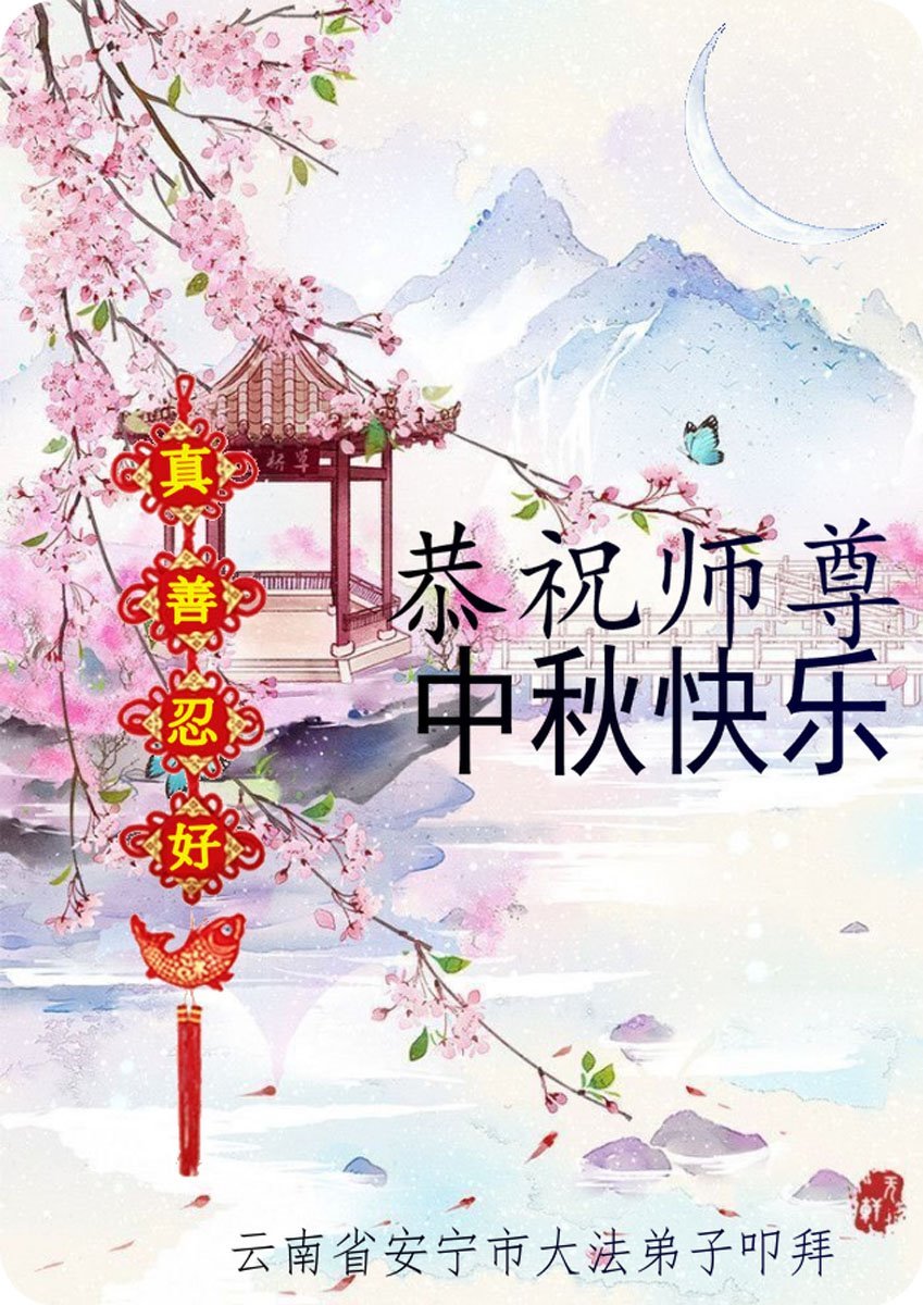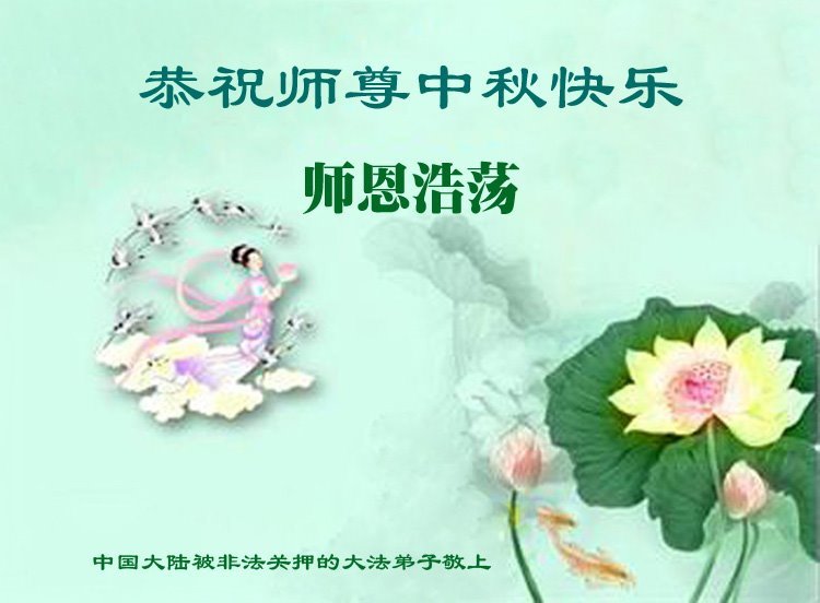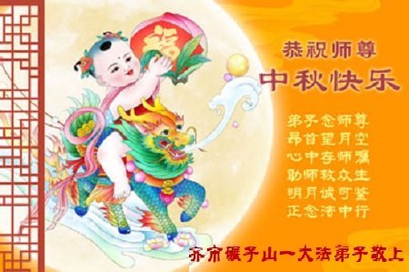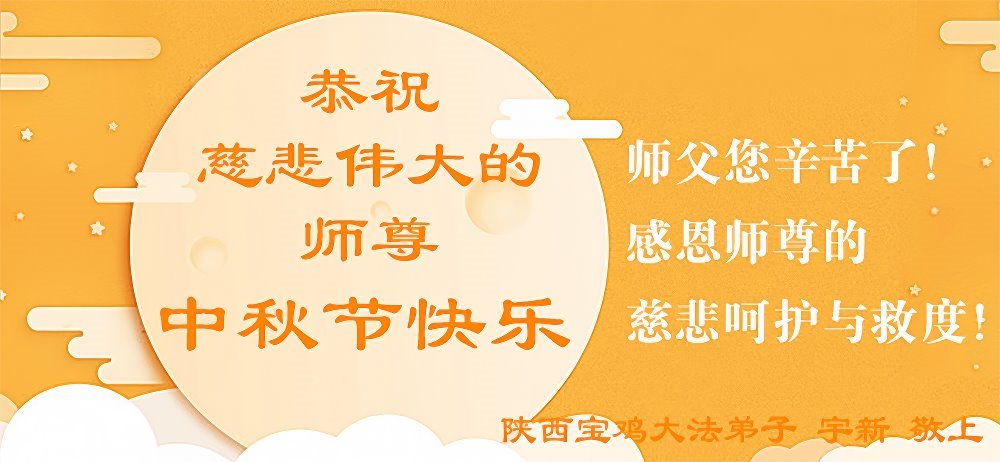 师父,您为众生承受的太多了!为了使大法弟子修炼成熟,为了使更多的众生得救,师父用巨大的付出一再延长时间。作为弟子没有语言表达对师父的感恩,唯有借此中秋佳节之际向伟大的师父问好:师父您辛苦了!我们一定遵照师父教诲,做好三件事,以报师恩!