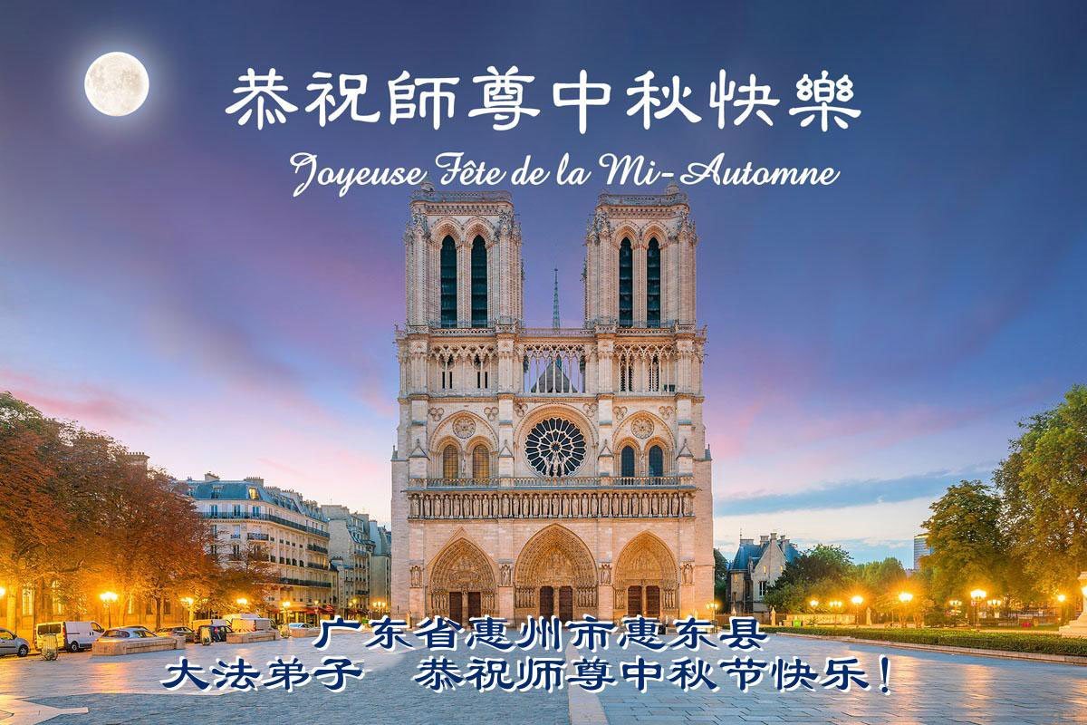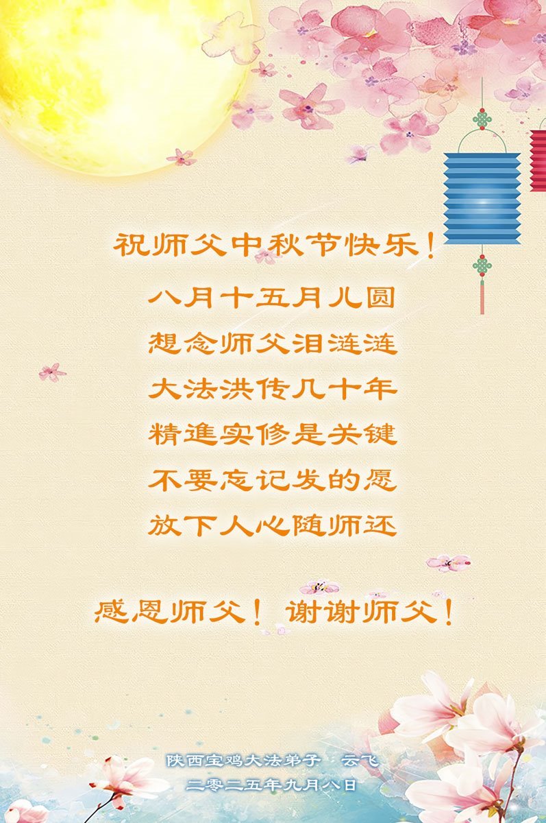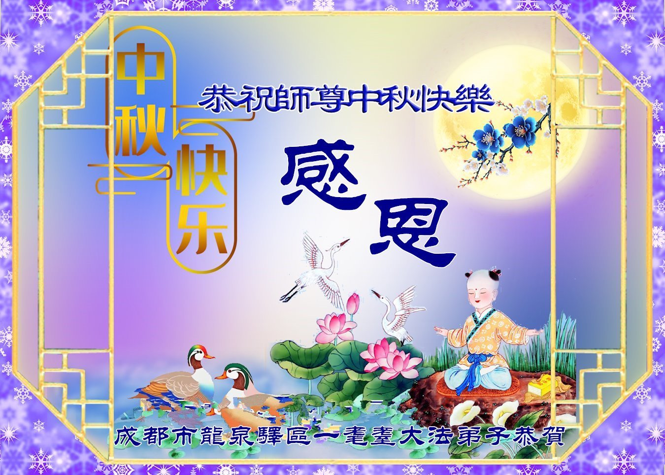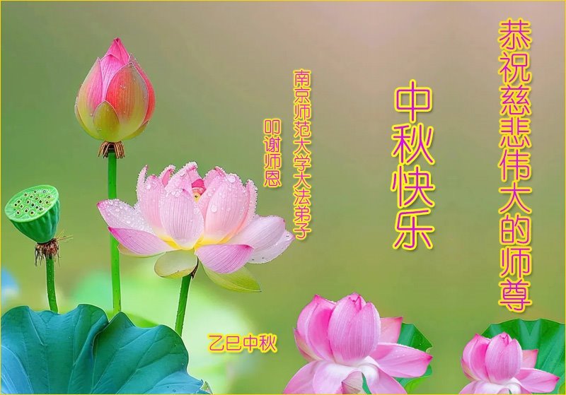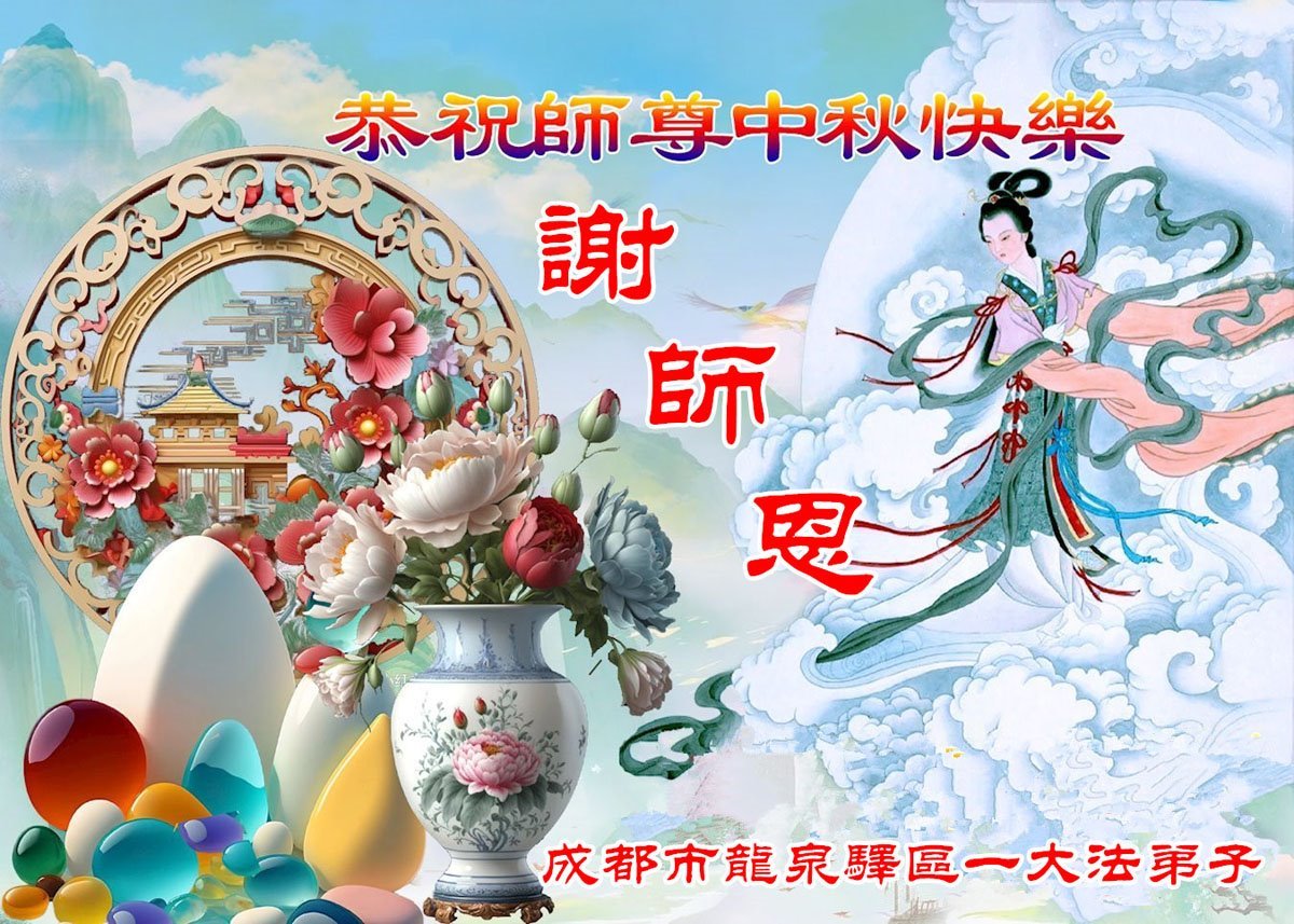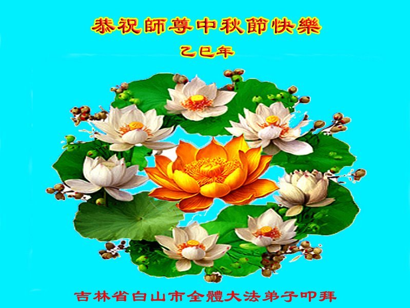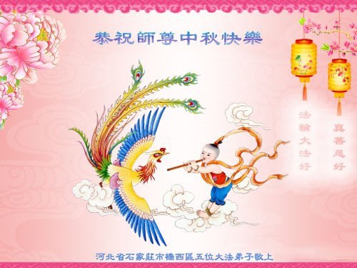 师父,您为众生承受的太多了!为了使大法弟子修炼成熟,为了使更多的众生得救,师父用巨大的付出一再延长时间。作为弟子没有语言表达对师父的感恩,唯有借此中秋佳节之际向伟大的师父问好:师父您辛苦了!我们一定遵照师父教诲,做好三件事,以报师恩!