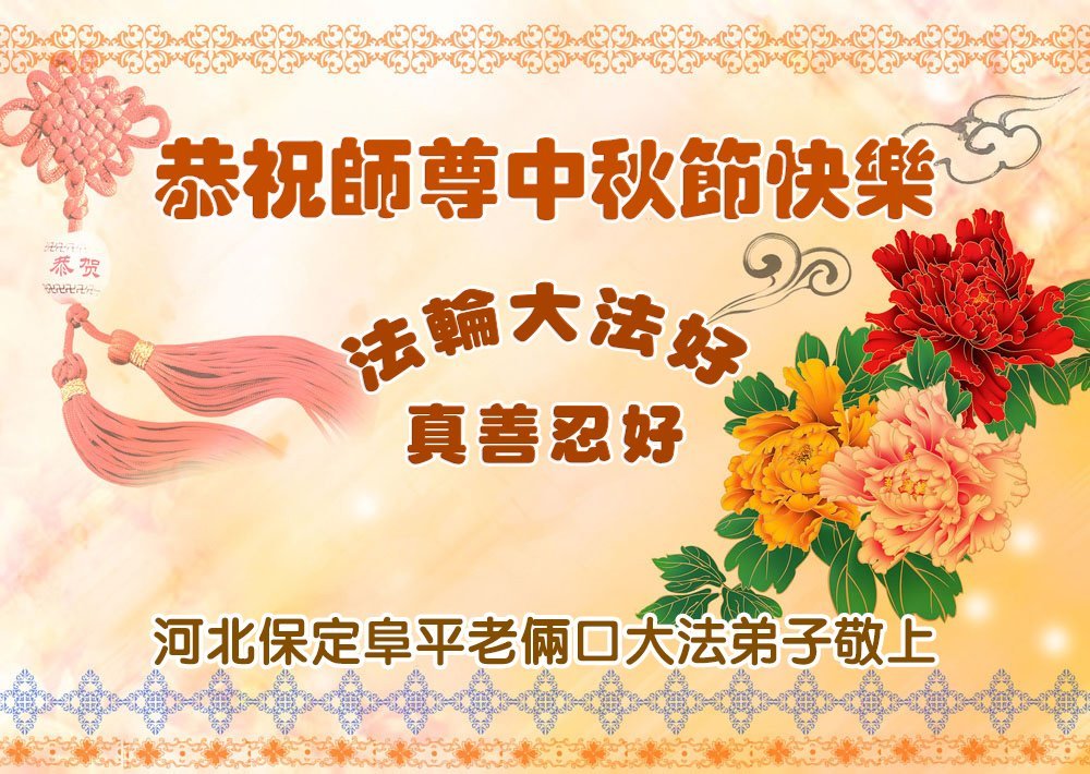 在我九十一岁那年,正值中秋节要到了,当时我让女儿帮我写给师父的节日问候。女儿写完后,我交给同修。同修把稿件的开头和结尾改变了一下,称呼作为大法弟子家人给师父的贺词发往明慧网。女儿写道:我妈妈今年九十一岁高龄了,自从二十年前炼了法轮功,从一个浑身是病、不能干活的人,变成了走路生风无病一身轻的超级健康的人。而且,九十多岁的人,耳不聋、眼不花、头发不白,牙齿好,洗衣、做饭、收拾家务手脚麻利。因为我妈妈修炼法轮功,作为女儿我从不为她身体健康担心,用我妈妈自己的话说,她有师父管。感谢大法师父让我妈妈拥有健康的身体,感恩大法师父。中秋节来临,我衷心祝愿大法师父中秋节快乐!法轮大法好!真善忍好!
