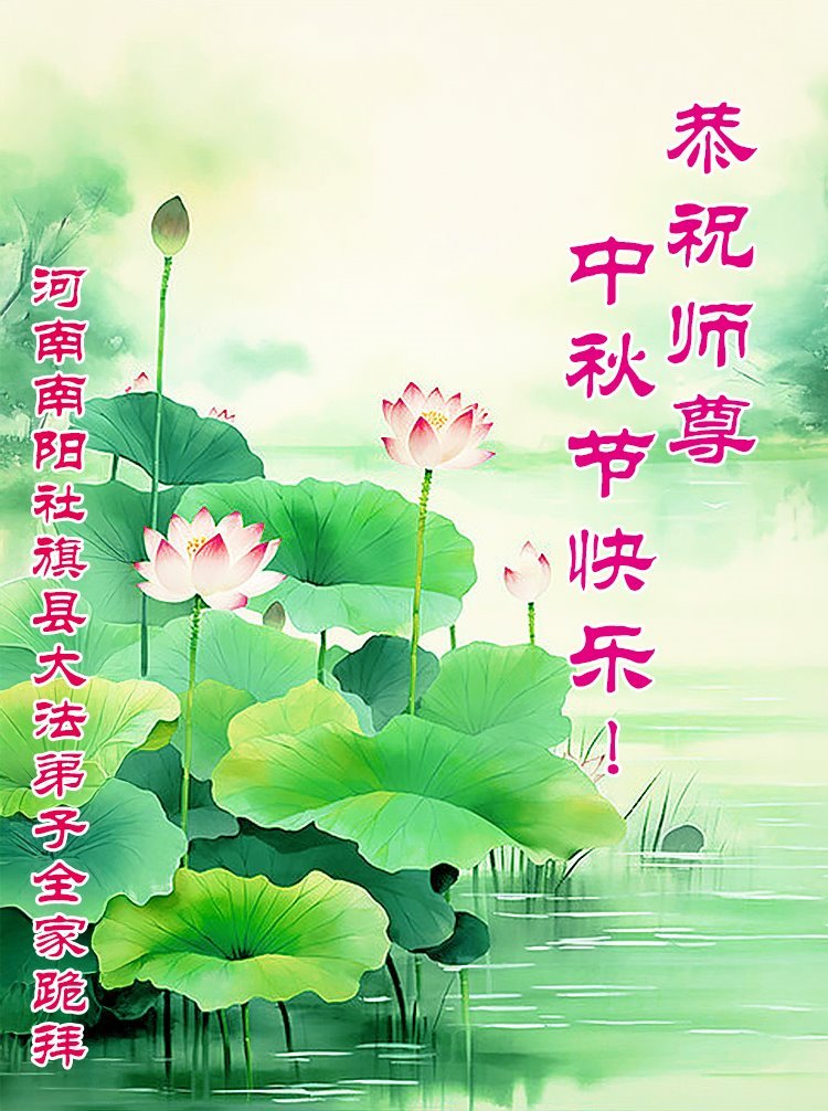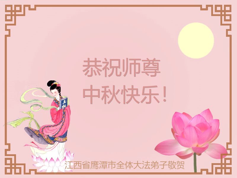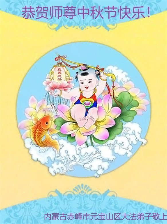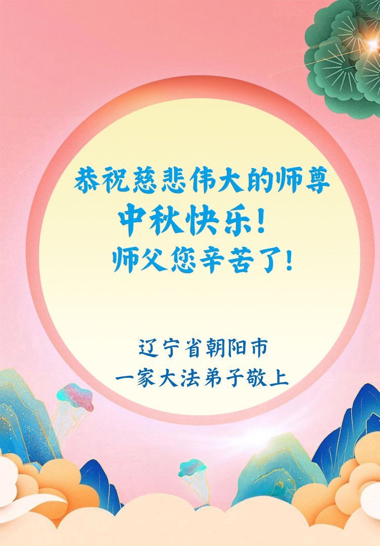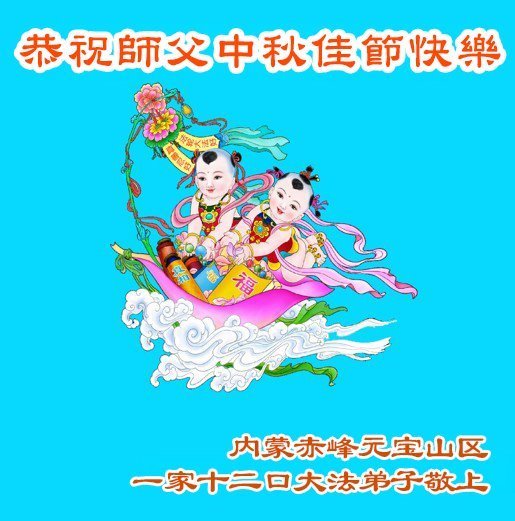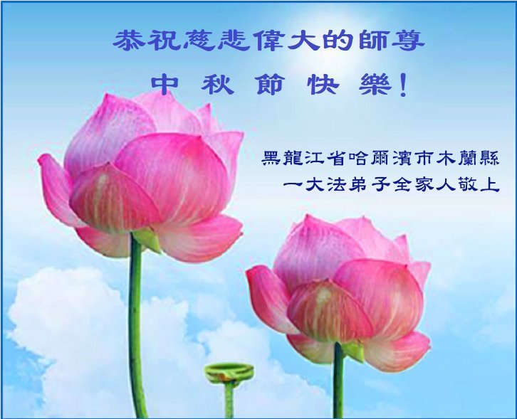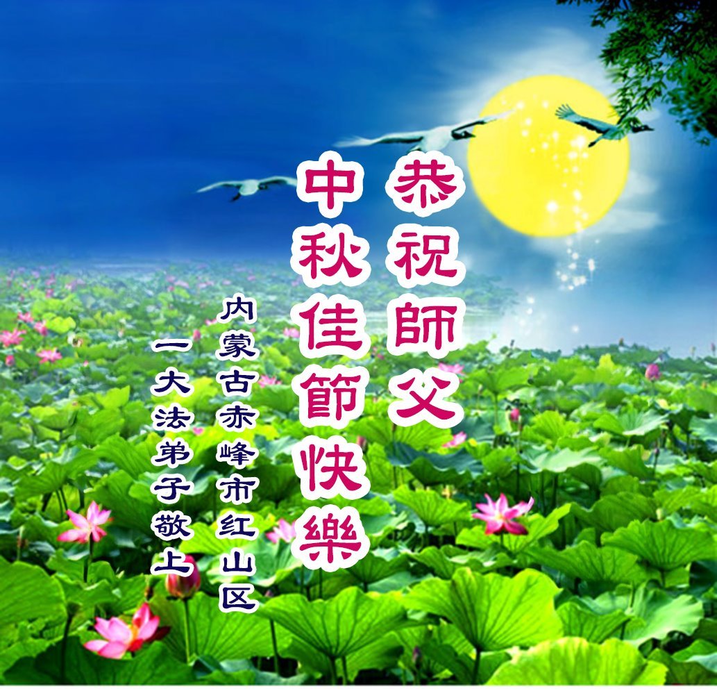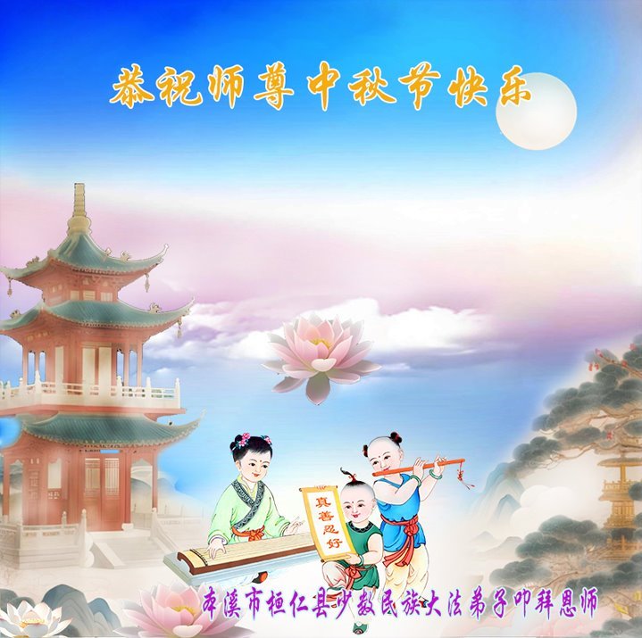 师父您好!我的家人们很早就明白了真相三退了,选择了美好的未来。在中秋佳节来临之际,全家衷心感恩大法师父,并祝愿大法师父中秋节快乐!