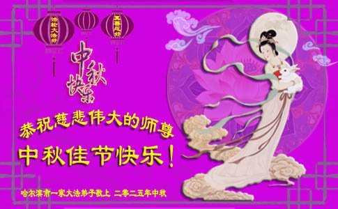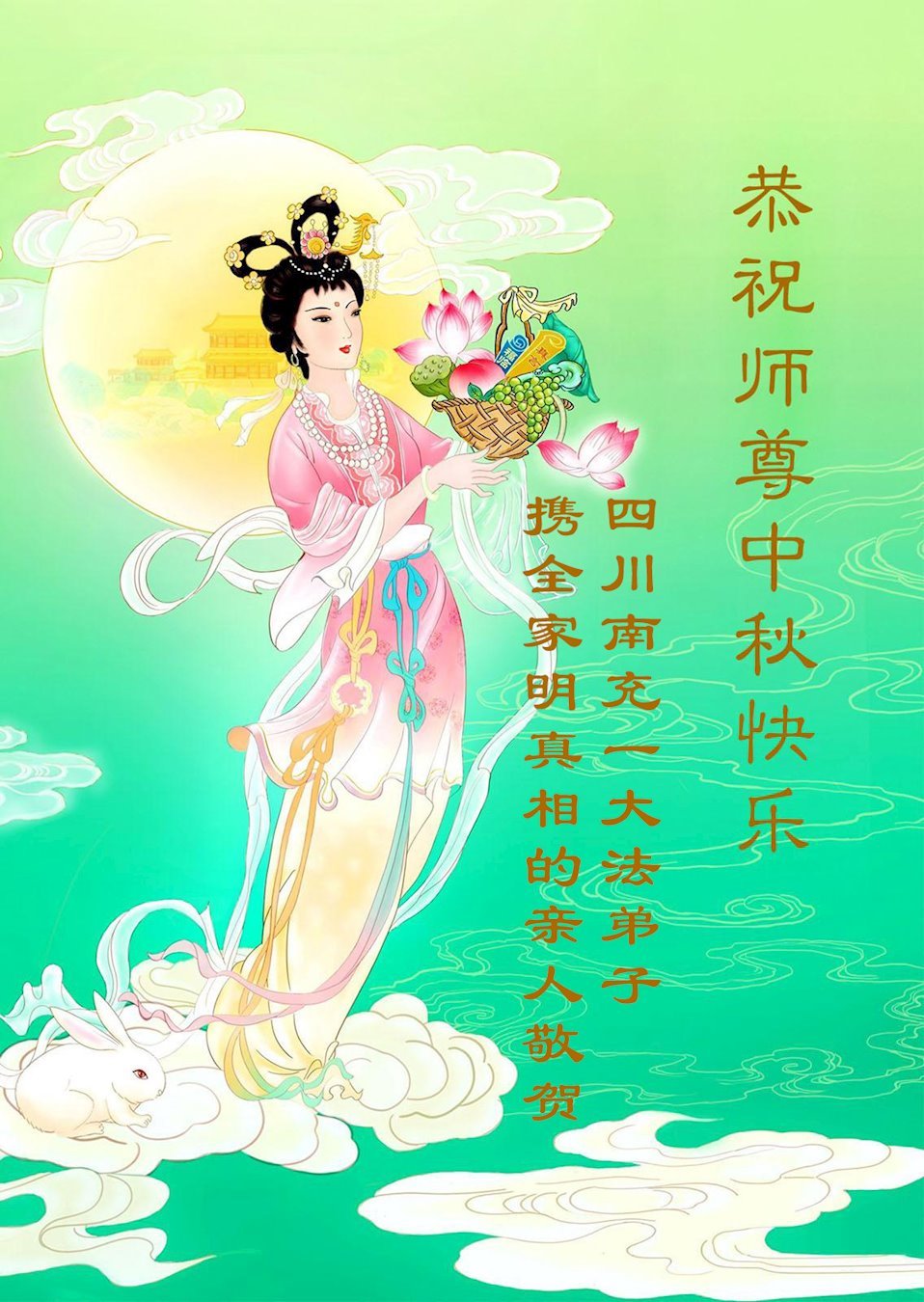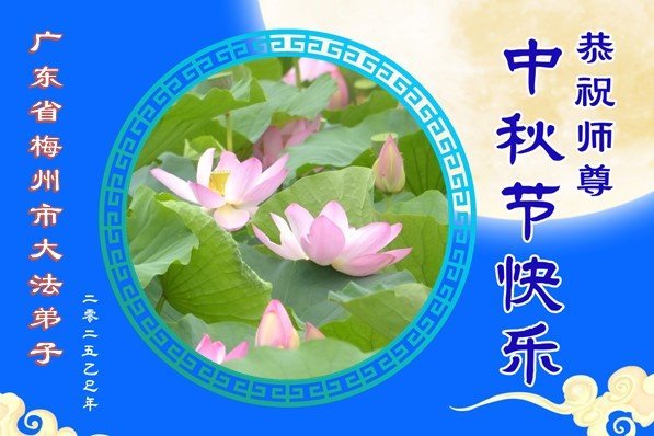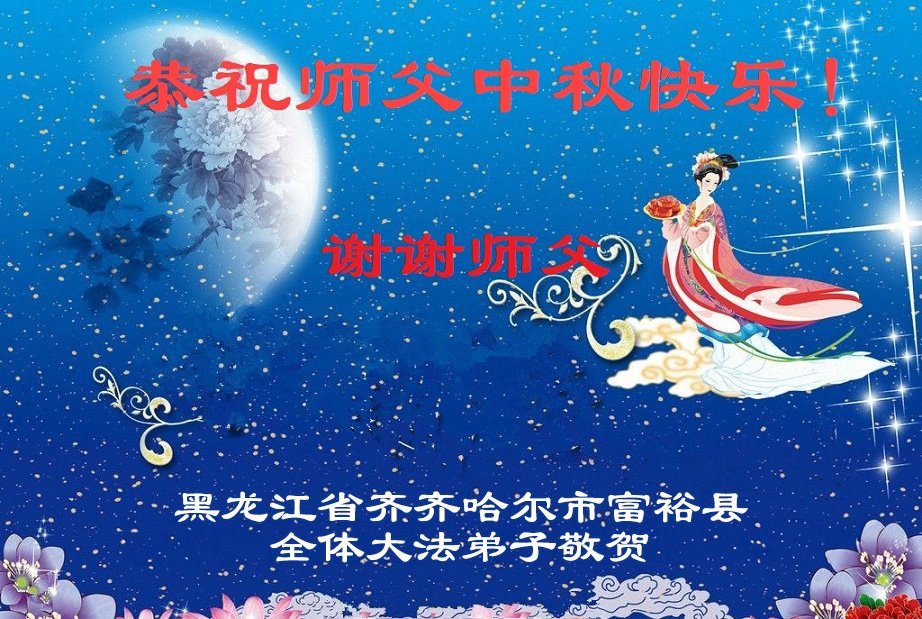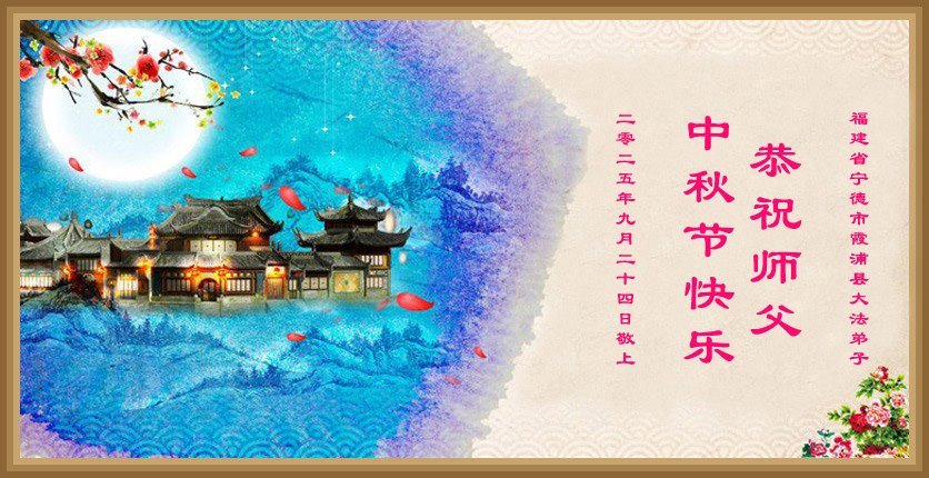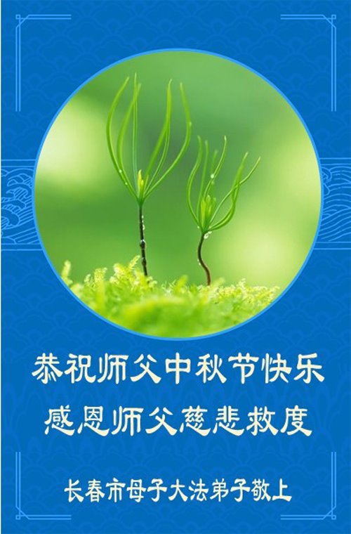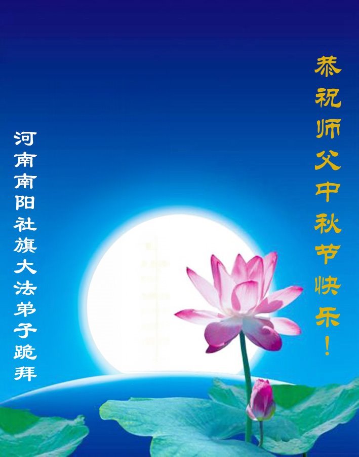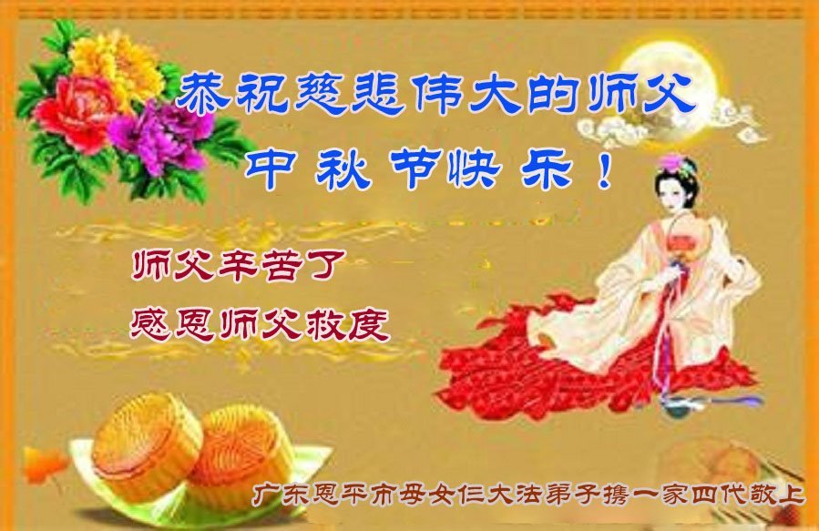 师父您好!我的家人们很早就明白了真相三退了,选择了美好的未来。在中秋佳节来临之际,全家衷心感恩大法师父,并祝愿大法师父中秋节快乐!