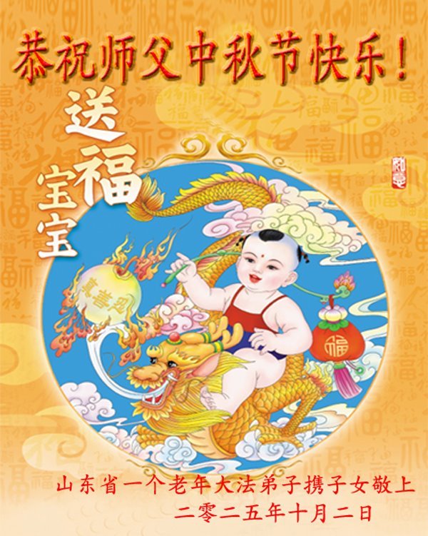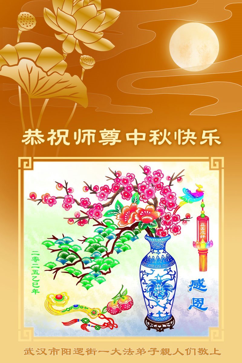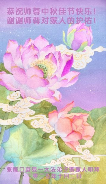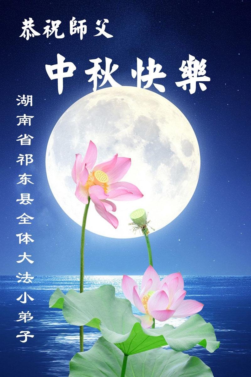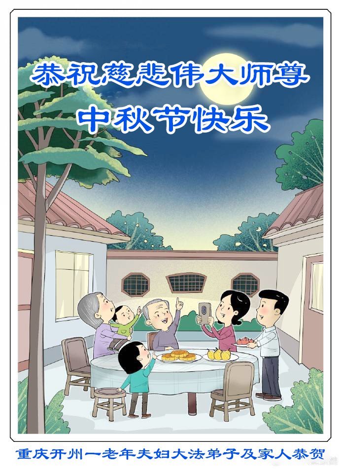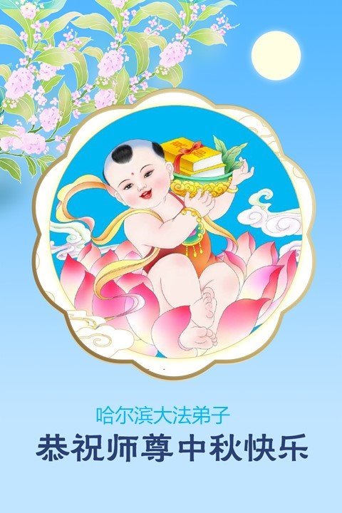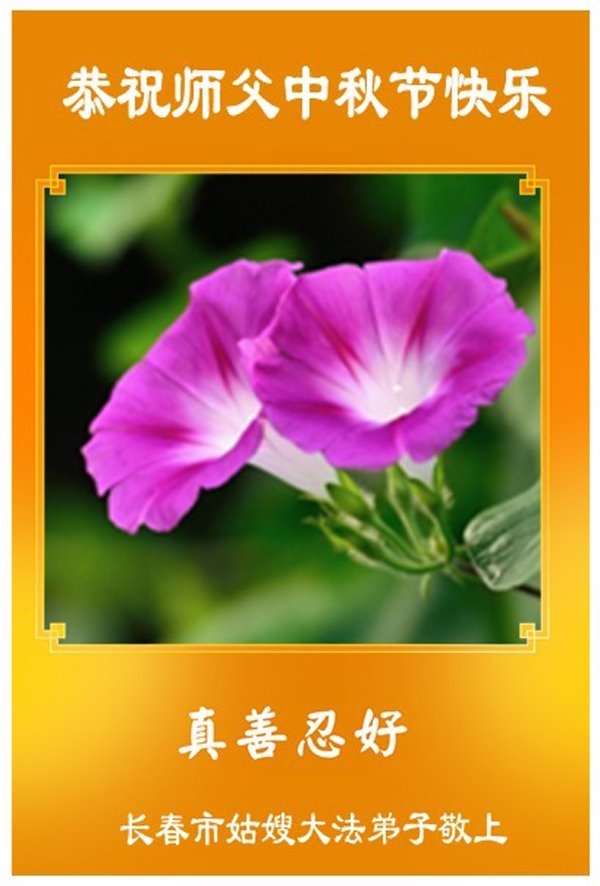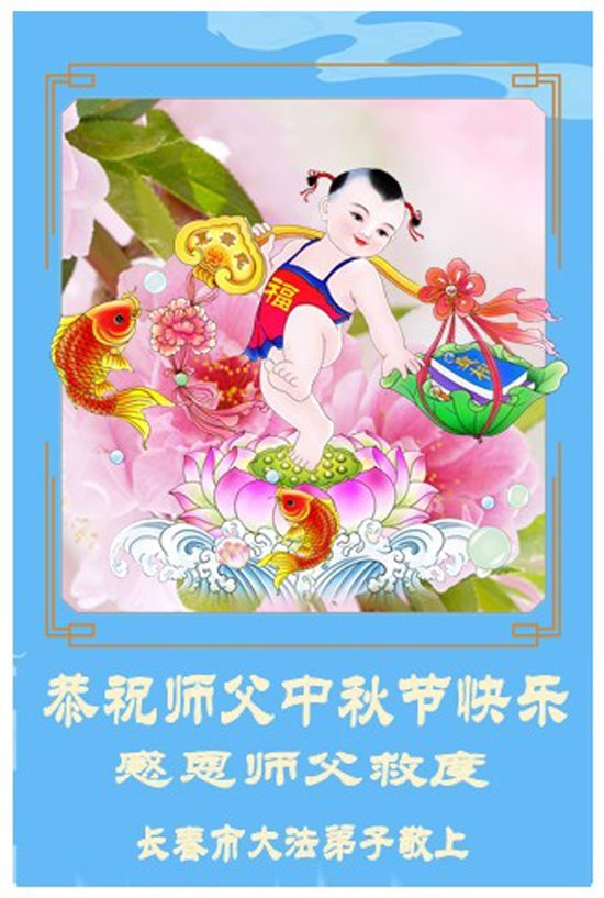 师父您好!我的家人们很早就明白了真相三退了,选择了美好的未来。在中秋佳节来临之际,全家衷心感恩大法师父,并祝愿大法师父中秋节快乐!