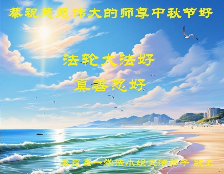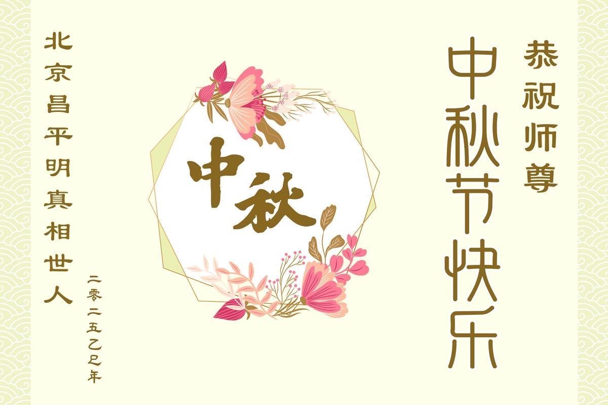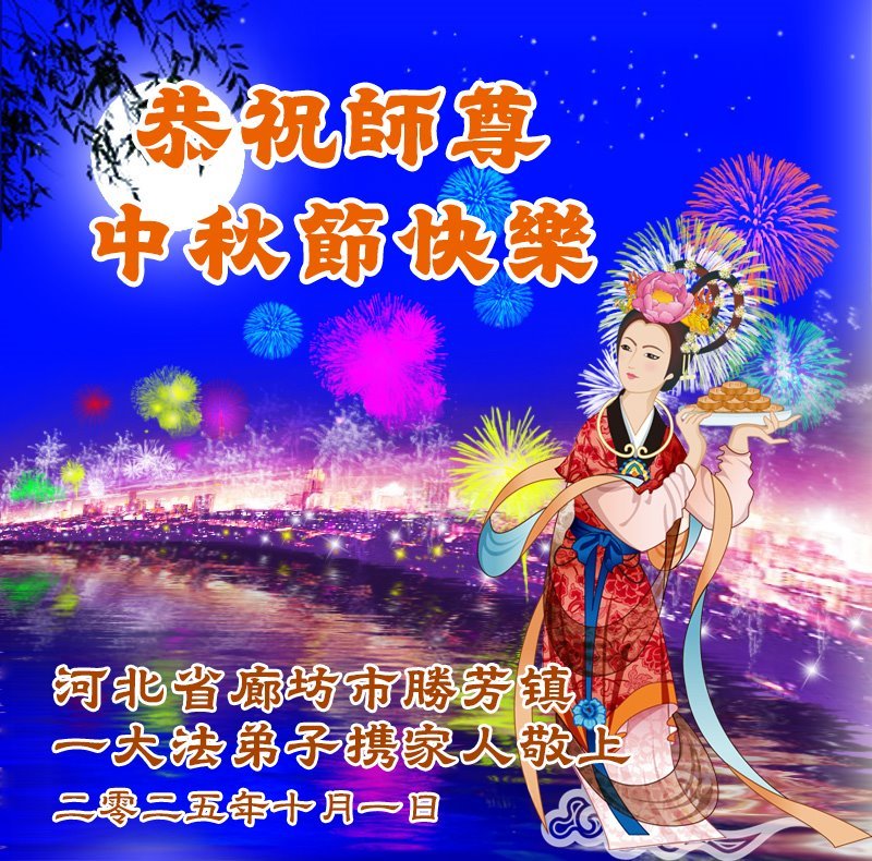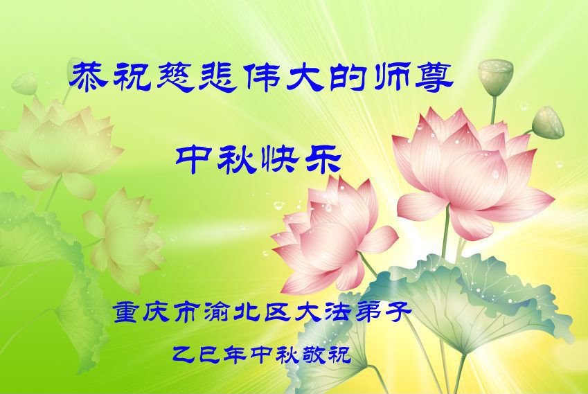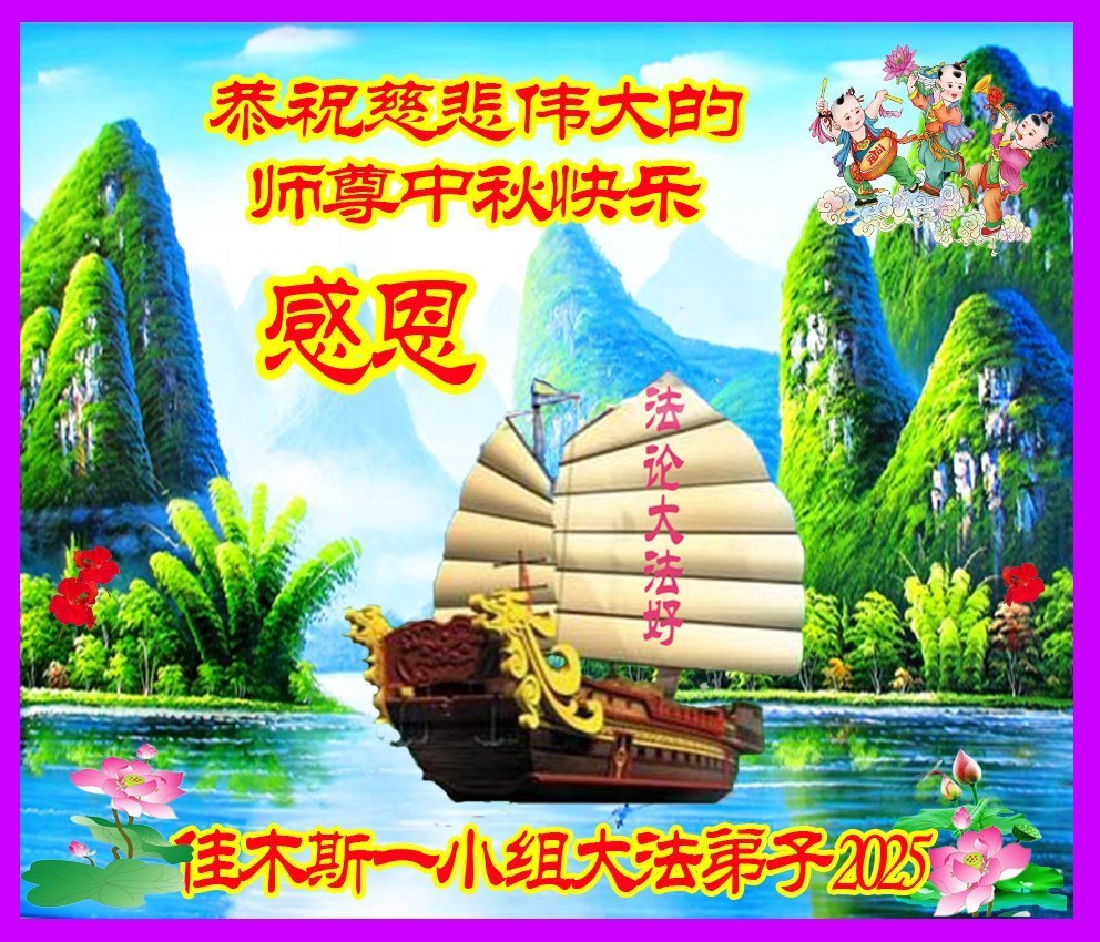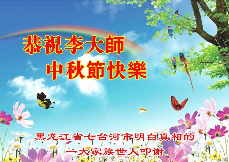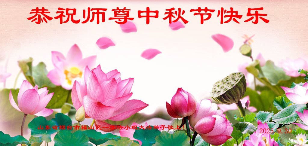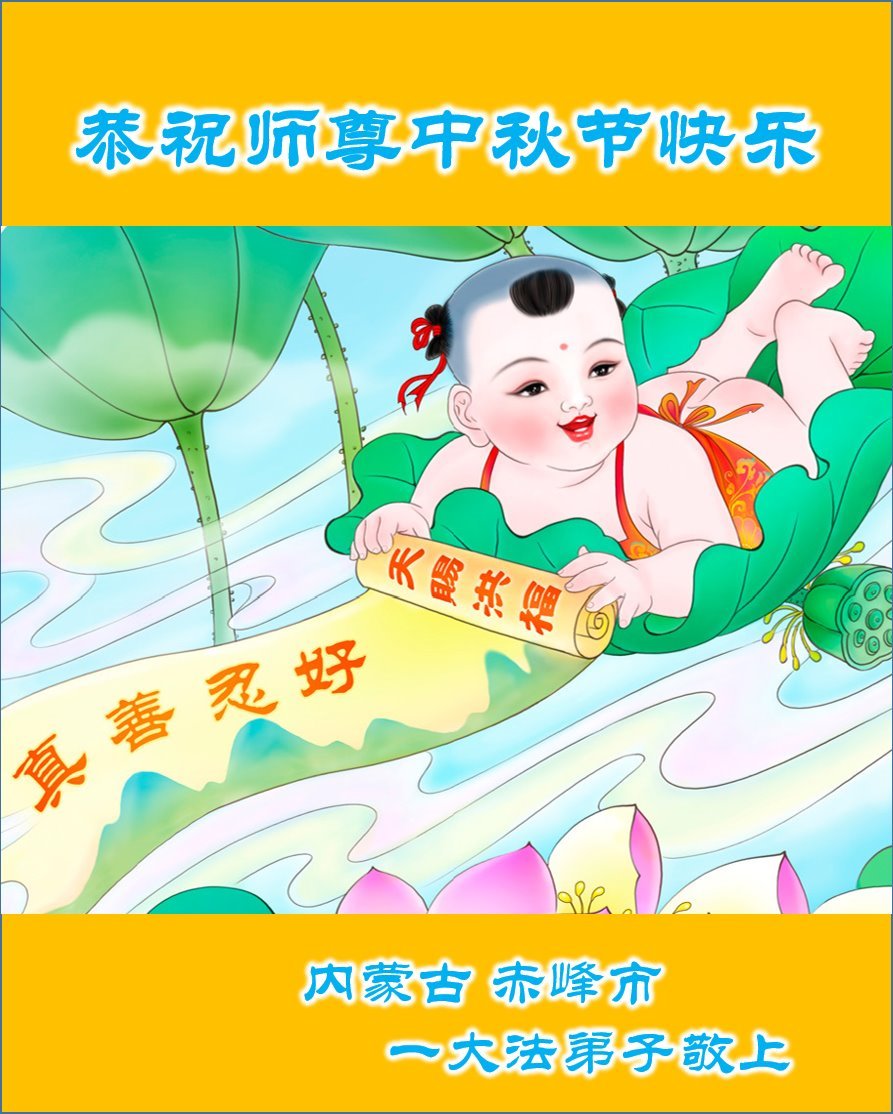 我们大法弟子携家人和明真相的世人恭祝师尊中秋节快乐!师尊辛苦了!谢谢师尊的慈悲苦度!弟子一定破除旧势力的安排,消除间隔,形成强大的整体,反迫害,救度众生。弟子们要多学法,学好法,发好正念,向内找,兑现自己的誓约,跟师父回家。