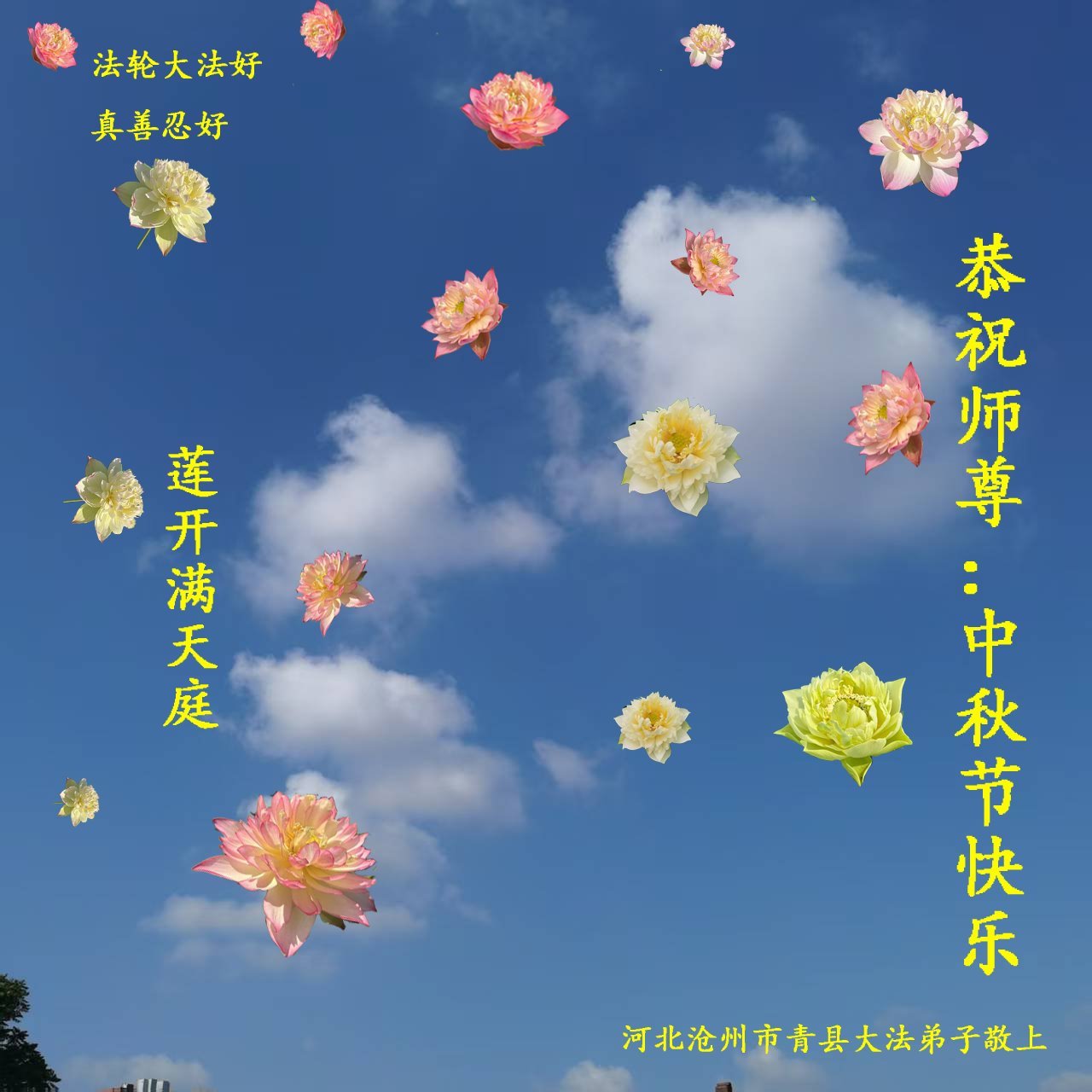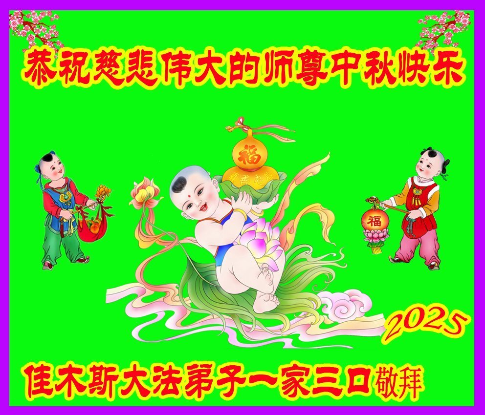 一年一度的中秋来临之际,弟子代全家感恩师尊的慈悲救度!是法轮大法改变了我,让我做一个更好的人。弟子用千言万语也表达不了对师尊的感恩,师父为弟子承受的太多太多,弟子无以回报,只有精進实修,多救人,以报师恩!