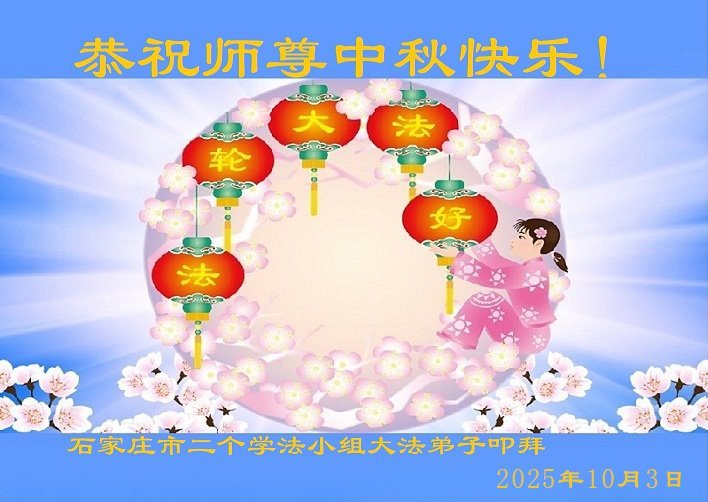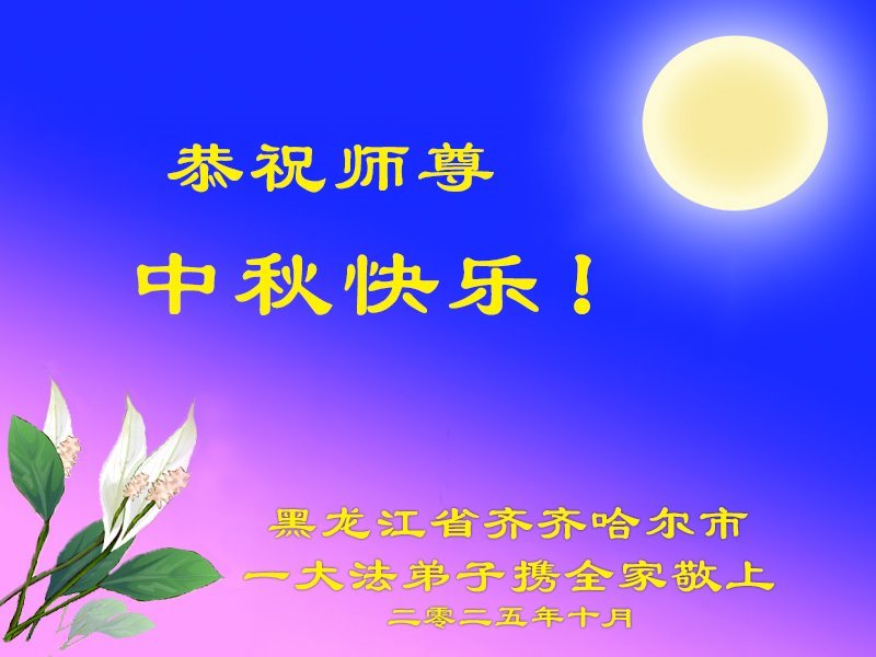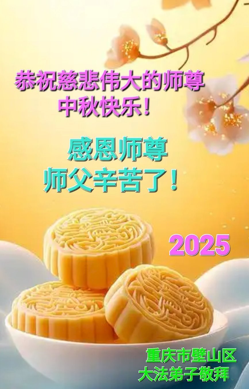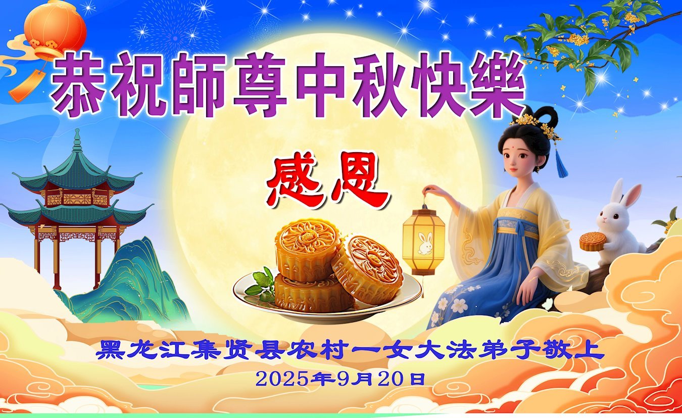 【明慧网二零二五年十月五日】(明慧网通讯员综合报道)海天一碧月儿圆,随师正法在人间。在这中秋佳节万家团圆的日子里,中国大陆各省市大法弟子们万分想念师父,感恩师父!感念师尊亲临世间传大法,赐予众生得救的万古机缘。不管未来的路是艰难还是平坦,弟子们都会义无反顾的紧随师尊,把阳光与希望洒向人间。