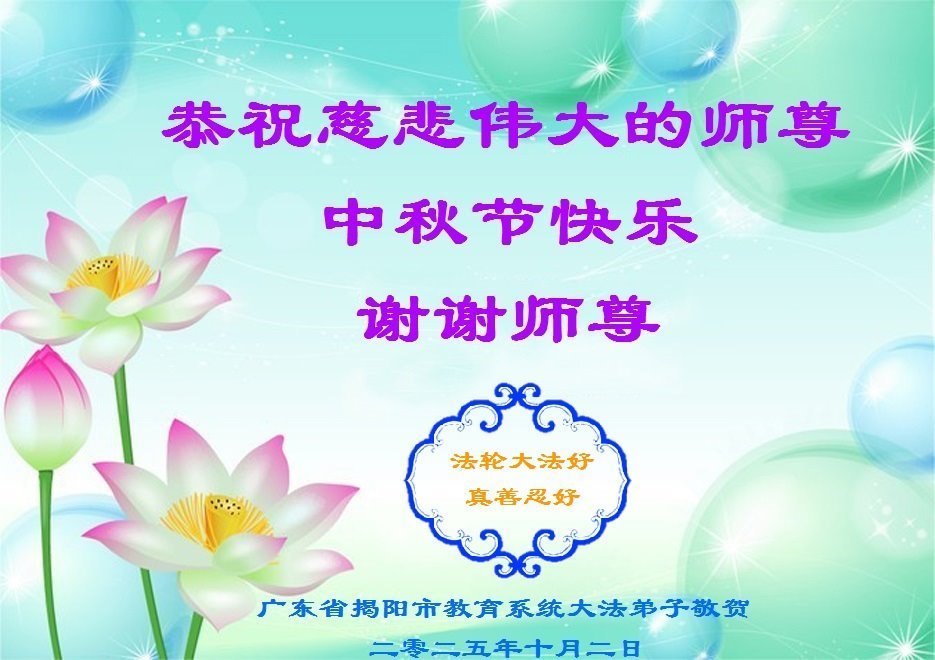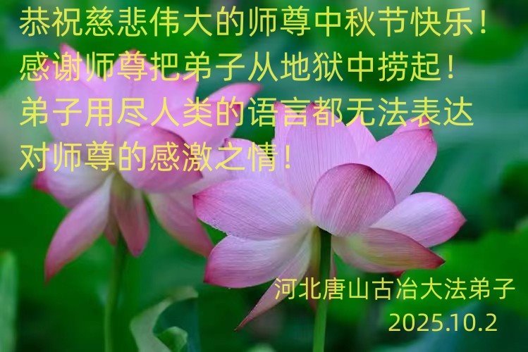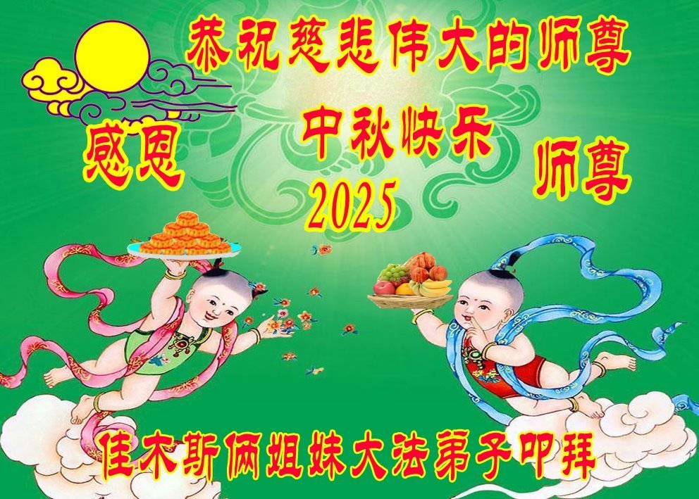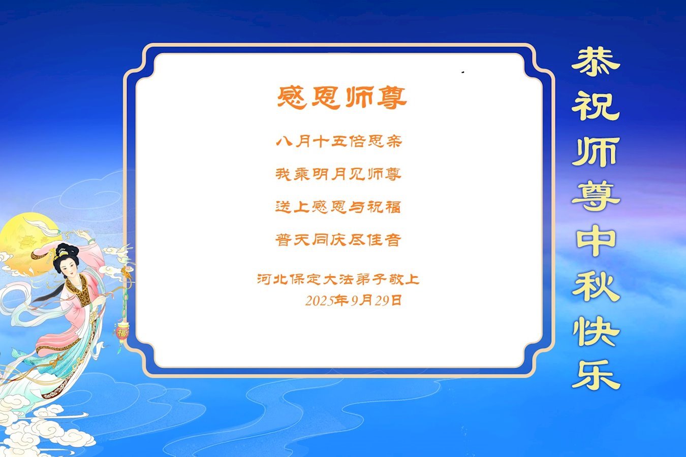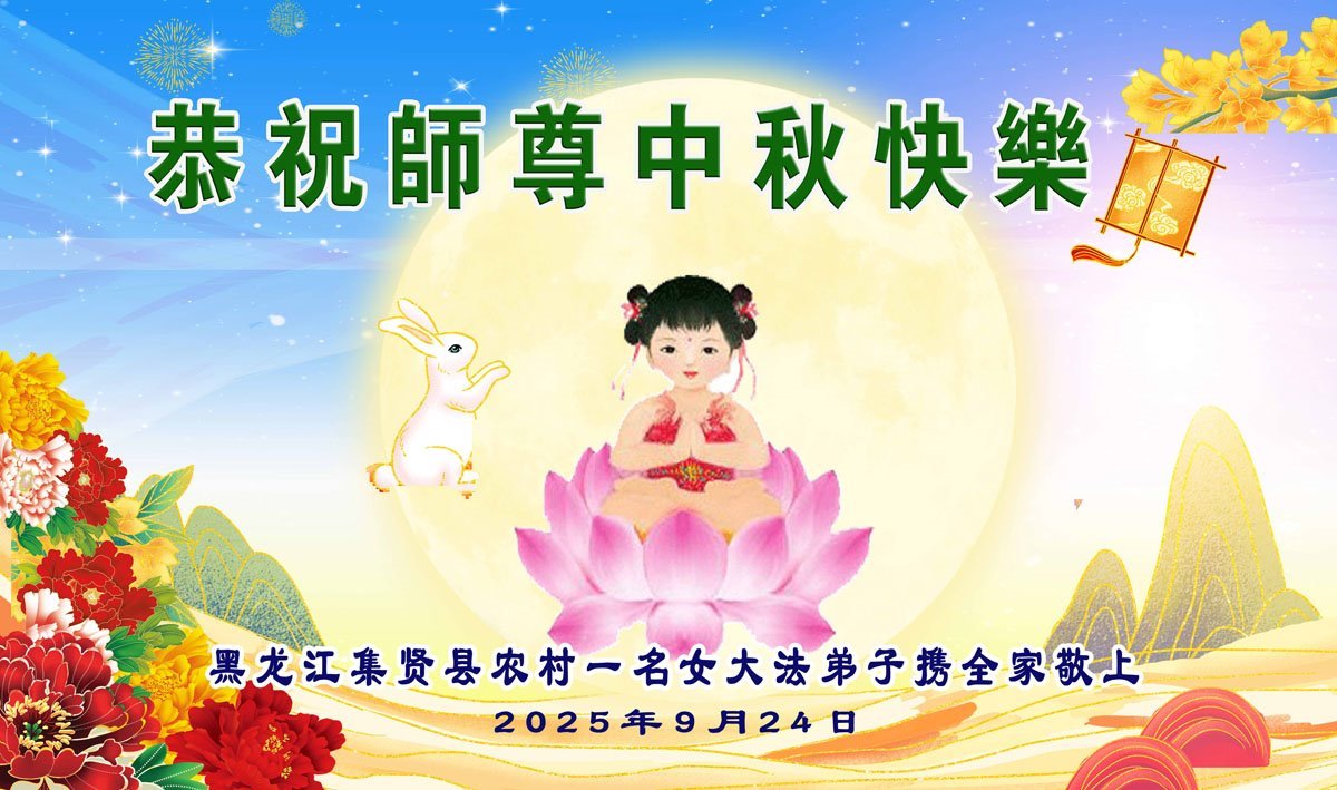 【明慧网二零二五年十月五日】(明慧网通讯员综合报道)海天一碧月儿圆,随师正法在人间。在这中秋佳节万家团圆的日子里,中国大陆各省市大法弟子们万分想念师父,感恩师父!感念师尊亲临世间传大法,赐予众生得救的万古机缘。不管未来的路是艰难还是平坦,弟子们都会义无反顾的紧随师尊,把阳光与希望洒向人间。
