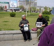 | 图4.陈淑华捧着孙子王建国的照片在大街上、火车站、汽车站前向路人讲述孙子被迫害的真相 | |