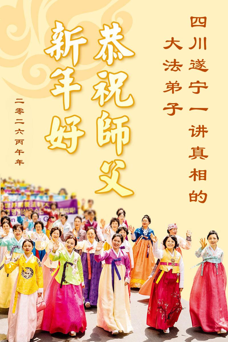 师尊新年好!2026新年到,大法在救人,是师尊在导航!弟子们唯有精進实修,修去人心,修去执著,跟着师尊救更多的人。在此,我们全体弟子向师尊合十,恭贺师尊新年快乐!