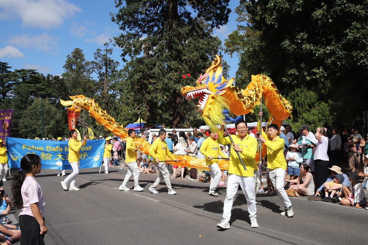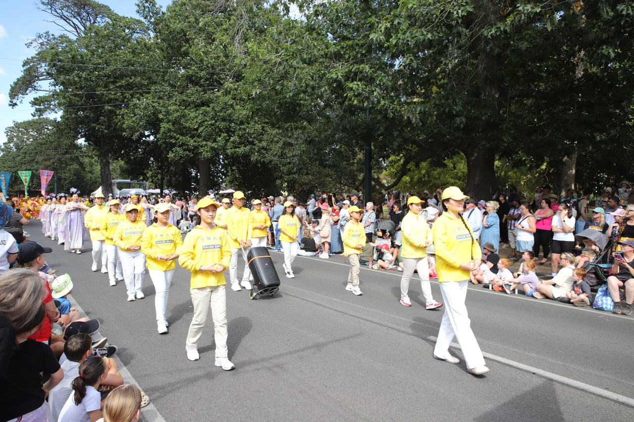 【明慧网二零二六年三月十一日】(明慧澳洲墨尔本记者站报导)二零二六年三月七日到九日,澳大利亚维州淘金古镇巴拉瑞特(Ballarat)在维州劳动节长周末,迎来一年一度的秋海棠节(Ballarat Begonia Festival)。三月九日,举行了备受期待的节日盛装游行(Begonia Festival Parade),法轮功团体再次受邀参加。