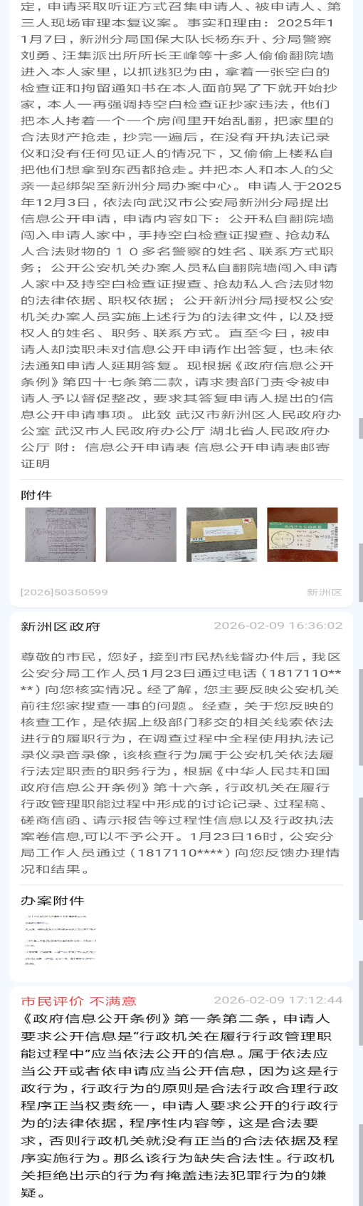 四、汪集派出所警察冒充高新分局警察进行非法“敲门行动”,张慧琼申请信息公开、行政复议、行政诉讼均遭违法不答复、不作为