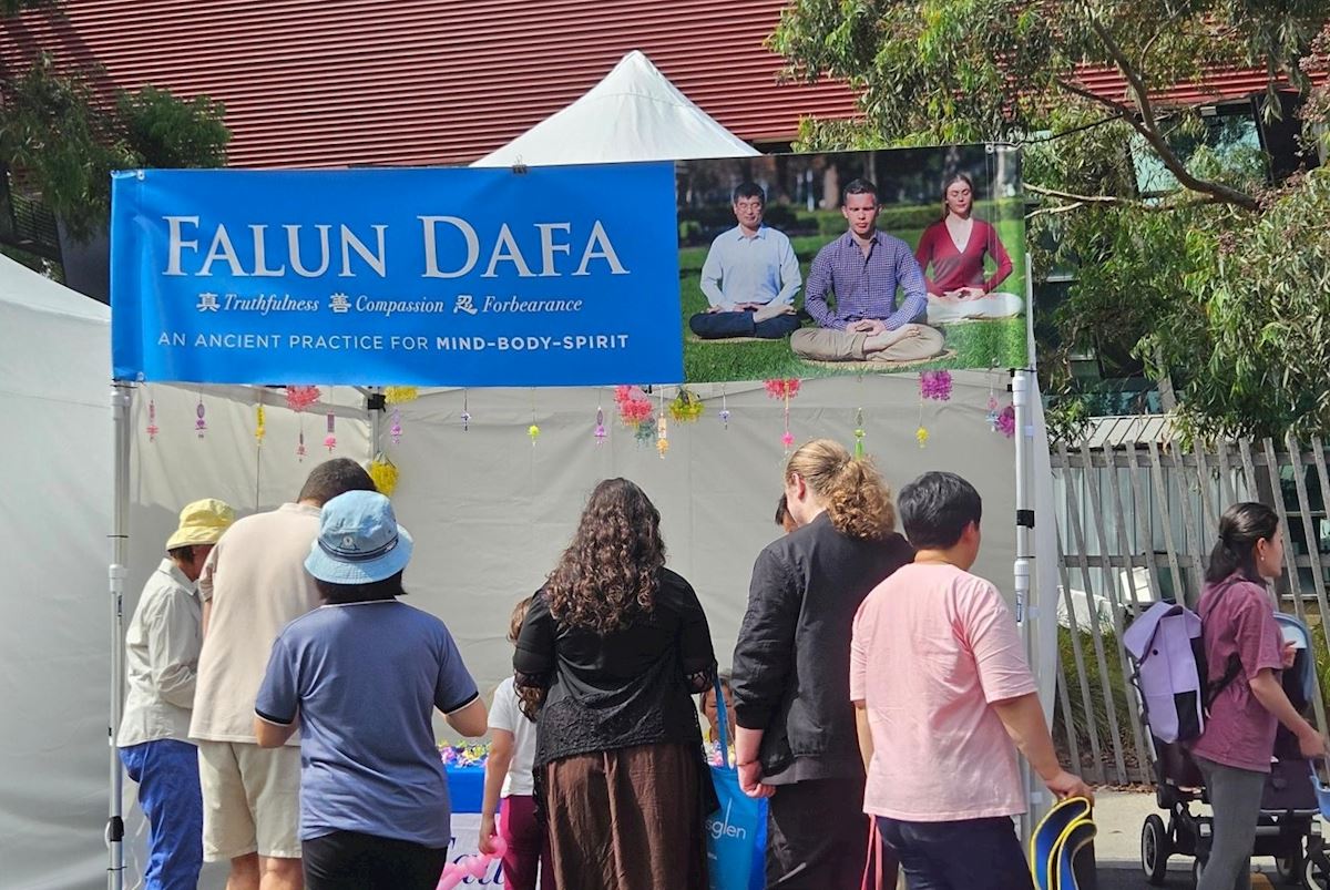 【明慧网二零二六年三月二十六日】(明慧墨尔本记者站报道)二零二六年三月二十二日,澳洲墨尔本东南区克雷顿(Clayton)举行了一年一度的社区节庆(Clayton Festival)。法轮功学员在节庆上的展位吸引了各族裔民众驻足,与学员交流了解详情。