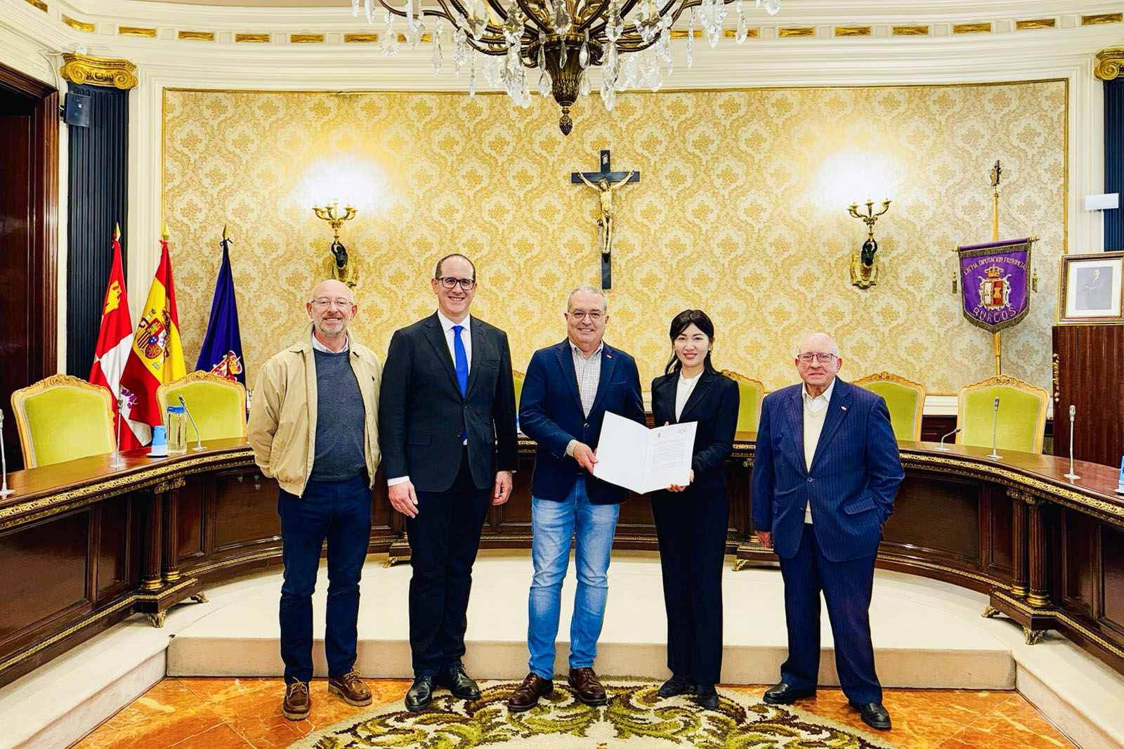 ![]() 图7:二零二六年三月十九日上午,西班牙布尔戈斯省议会议员在古色古香的省议会办公大楼,为神韵艺术团颁发褒奖信。(大纪元) |