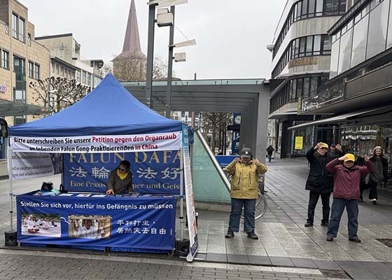 三月二十八日,德国北威州部分法轮功学员在波鸿市中心举办了一场介绍法轮功的信息日活动,引起路过行人的关注。