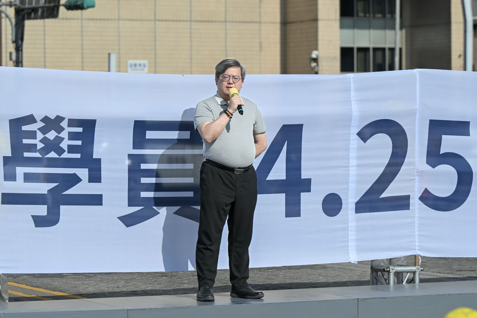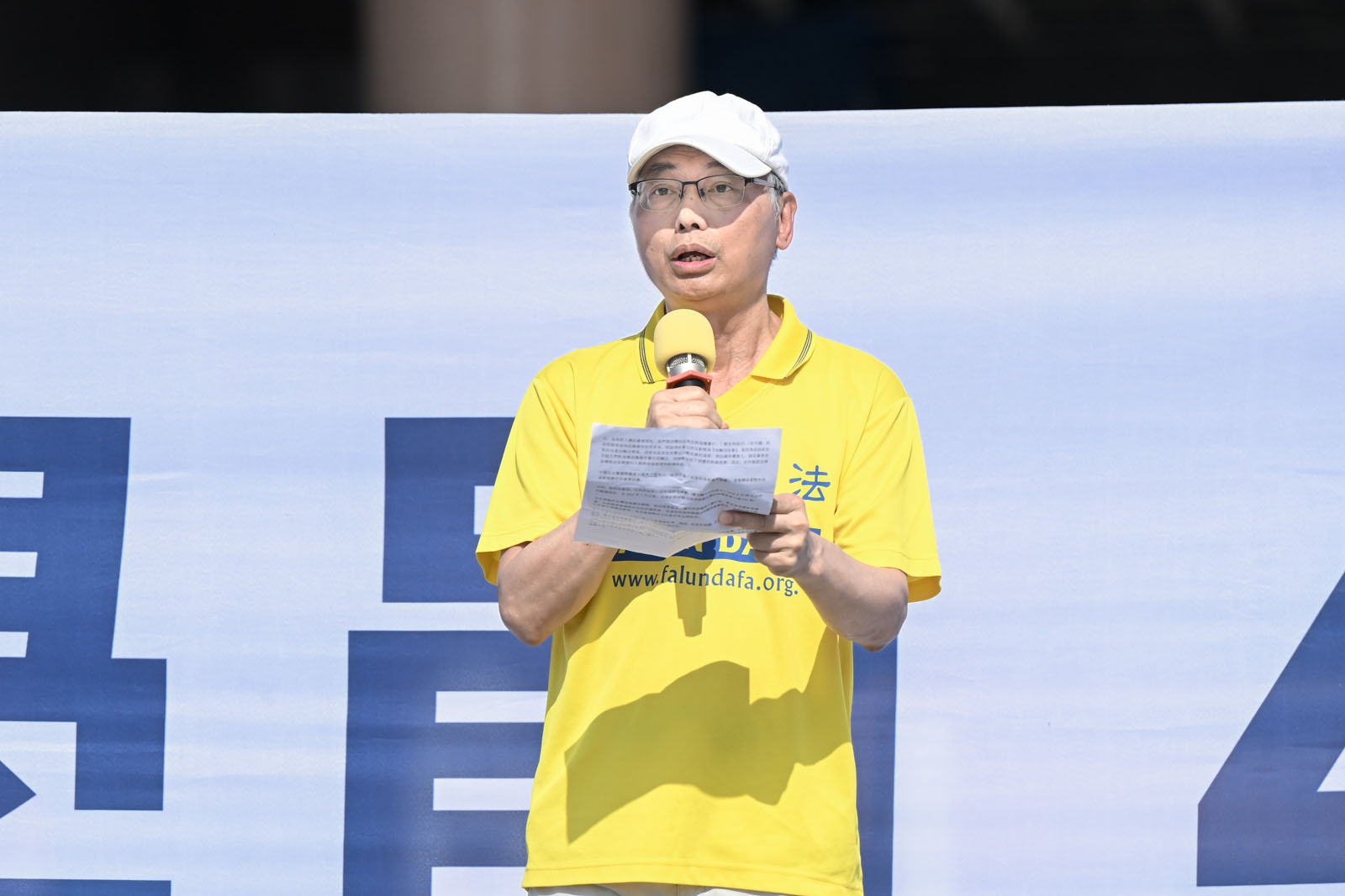 台湾法轮大法学会理事长萧松山致词表示,“四·二五”不仅是一场和平上访,更树立历史性的道德丰碑。
