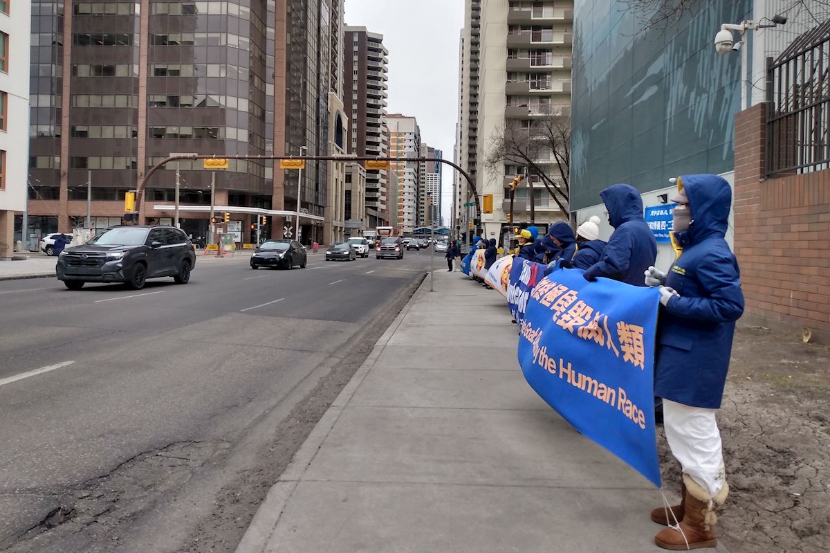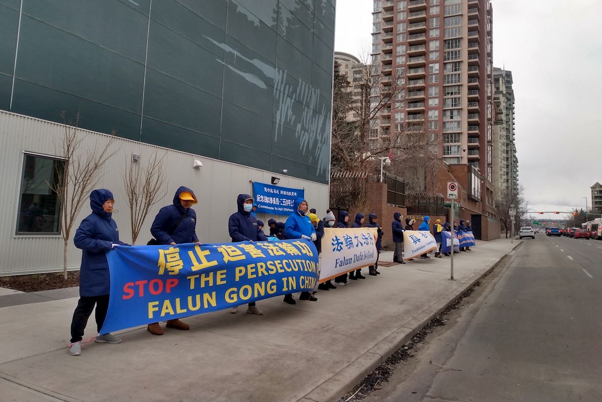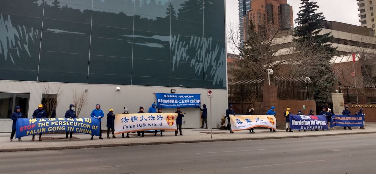 ![]() 图1~3:四月二十四日下午,卡尔加里部分法轮功学员在中领馆前纪念“四·二五”和平上访27周年。 |