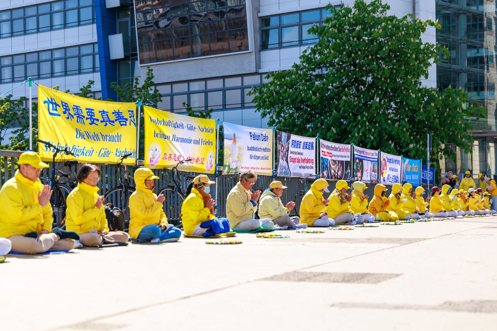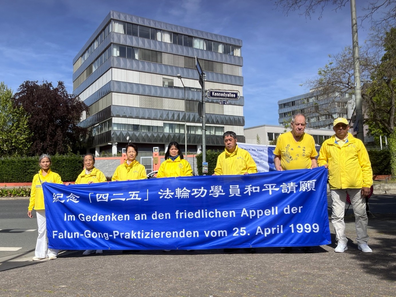 【明慧网二零二六年四月三十日】(明慧德国记者站报道)在纪念四·二五逾万名法轮功学员和平、理性上访27周年期间,德国包括柏林、法兰克福、杜塞尔多夫和慕尼黑在内的多城法轮功学员分别于二零二六年四月二十二日至二十七日在中国使、领馆前举行和平抗议活动,揭露中共迫害法轮功真相,呼吁国际社会共同制止中共迫害。
