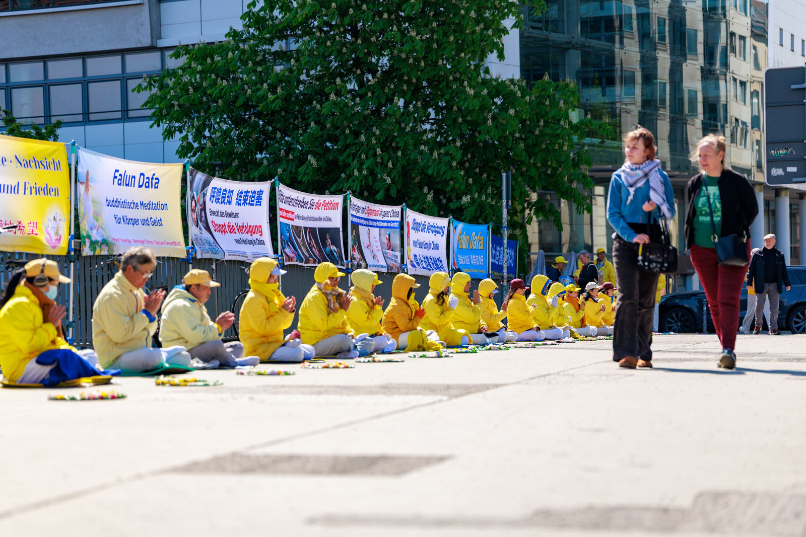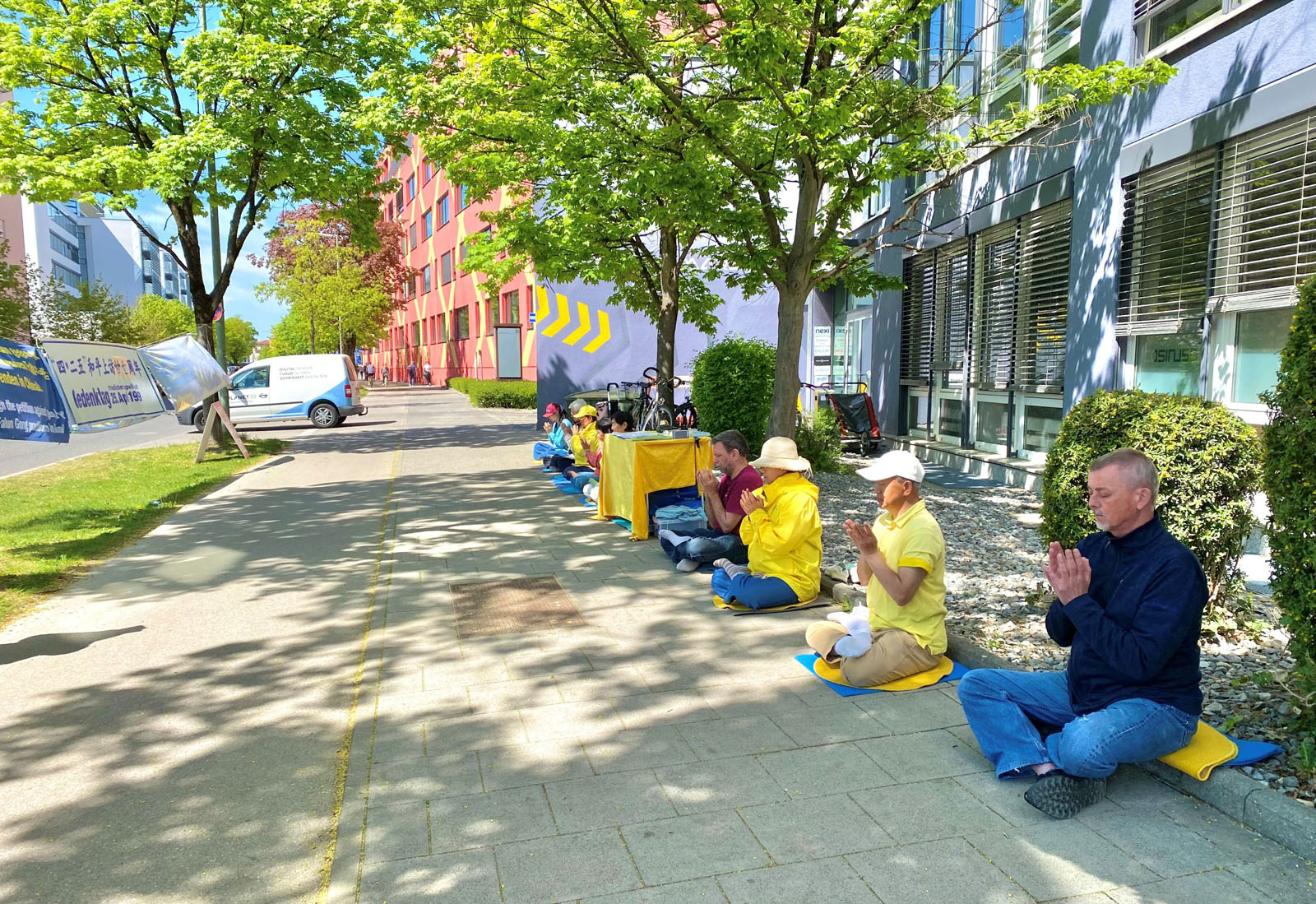 四月二十七日,部分巴伐利亚法轮功学员来到慕尼黑中领馆前举办活动。学员通过展示功法,向过往行人发放真相资料的方式,讲述了法轮功的美好,以及中共迫害法轮功的真相。